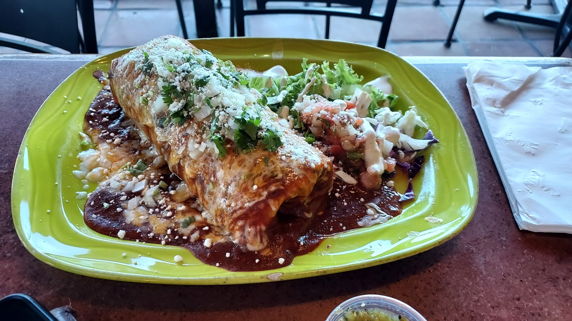 I wanted to give 3 stars for the Food, but the service was so good that I gave this place 4 stars. We ordered R & B ( Rice, Bean Burrito), Steak or Beef Taco, & Corn Tortilla soup. I was tiny bit disappointed with the soup. It was 11.95? and I thought it might be good...it did have few pieces of chicken in it ( & corn tortilla) but it was very light...almost very little flavour...the only good thing is I added Pico de Gallo from the salsa bar to give the soup more flavour but I would not get that soup again as it was not very big....wide bowl but shallow so it was not very hot. Overall, kind of bland soup. The R & B Burrito looked good ( Dad got it) and look big. Dad gave me a bite, it tasted good....rice nice and soft and beans were allright..it just overall taste good and flour tortilla was nice and fresh chew like fresh tortilla. But Dad did complain later to me that he wanted more bean paste? I thought it had enough bean but maybe Im wrong. I wanted Dad to try the chicken burrito but it was 13.95? and R&B burrito only 10.95? On the other reviews it said that Chicken burrito was marinated but I might be wrong. The Steak or Beef Taco was around 6 or 6.95 and even tho it had chunks of Beef or alot of Beef, the beef taste like it might be boiled? hmmm. I guess I should have ask if the Beef taco was carne asada because the taco trucks near saratoga have good Carne Asada taco. So the beef just look like it was boiled ( and no where near carne Asada...next time get beef from the taco trucks...not from here). The only good thing is that it look like cubes of Lengua ( if it were really Lengua it would have been a good taco, but no Lengua and boiled beef...) They did give you alot of Beef so I wrap the Beef in a flour tortilla for my mom since she has trouble eating the taco with tiny corn shell, soft shell corn but tiny so beef was overflowing out of the taco. So I used my Flour Tortilla ( which was delicious) from the soup you get a free tortilla which was huge and good Tortilla and wrap the beef for her to eat it. The only good thing about the food is the salsa bar is good. The corn salsa was the best. The Pico de Gallo missing some flavour that day...maybe need to add a little salt. There was one good red salsa ( it has tiny black specs in it...look like black pepper but that was the onlly good salsa). .For the other salsas, something missing. I think they need to add a tiny bit of salt to the salsa. Normally I dont like salt but the salsa and Pico de Gallo missing some salt. Later the nice service guy put out fresh lemons..but still the salsa needs tiny bit of salt. If there is a next time, I will try the chicken burrito for 13.95. The only reason I could think of to why maybe the soup was bland and beef tasting boiled ( from Taco) is maybe nobody wanted to work on this Holiday weekend ( it was Monday Martin Luther King holiday) and we went super early ( right when it opened). Sometimes the cooks in restaurant might be different and maybe they just had a bad cook that day ( that boil beef) and light soup. I just wish if they knew the soup was bland just tell me and I will order the chicken...