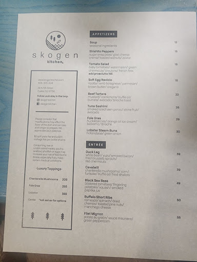 Read moreThis place is a diamond. The absolute best, as in hands down best restaurant that I have ever been to. I have traveled around the world and love eating and cooking, so I have been to a lot of five star places with the big names in the culinary world on the sign, and this place is above all of them. The restaurant is small, and dining is by reservation, so plan ahead, but you see your food being prepared and you have the opportunity to meet the genius chef Joseph and his wife Eliza. Both are very humble and very friendly. On one hand I dont want to tell anyone about Skogen so that I can keep the secret to myself and be selfish, but on the other hand I know it would be wrong to not share this wonderful gem with everyone else because they deserve all of the success that is in their future. From the appetizers to the desserts the flavor combinations are magical. We got the fois gras as an appetizer and immediately knew that we were in for a meal of epic proportions. We had a party of four, along with my two young children, and we all tasted each others meals, I ordered the Szechuan Walleye, and my initial thought was that the Szechuan flavors were going to overtake the mild flavors of the Walleye, I was dead wrong, never before had anyone been able to mellow down the strength of Szechuan and create such a delicious flavor profile to me than Chef Joseph. My wife and father had the suckling pig and once again the flavors showed the time, effort and creativity behind the dish. My mom ordered the ribs, and the tenderness and flavor were astounding. After dinner we had to indulge in dessert, three chocolate lava cakes with homemade ice cream and a salted caramel..........perfection doesn't even come close to being accurate. The staff were very friendly and obviously loved working at this amazing place. Thank you Chef Joseph, Eliza, and your staff at Skogen for an absolutely unforgettable experience that we all can't wait to...