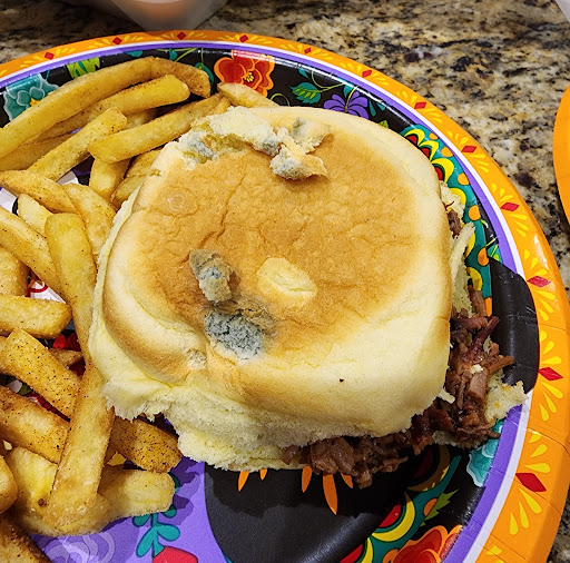 Read moreI hate doing this because they usually have good food but tonight was not it. I picked up a to go order which included a chopped beef sandwich. When I got home to split the sandwich in half for my kids I noticed spots on the bottom of the bread, pulled one spot off and it was mold, split another open and it was a much larger mold spot. When I called she acted nonchalant about it and said thanks for letting us know. When I asked for a refund I was told "we can't do that on our end you have to go online." which doesn't make sense? but okay. Then she offered to "add me to a list" so that I could get a replacement item for the sandwich next time I come in. Definitely make sure you check your bread...