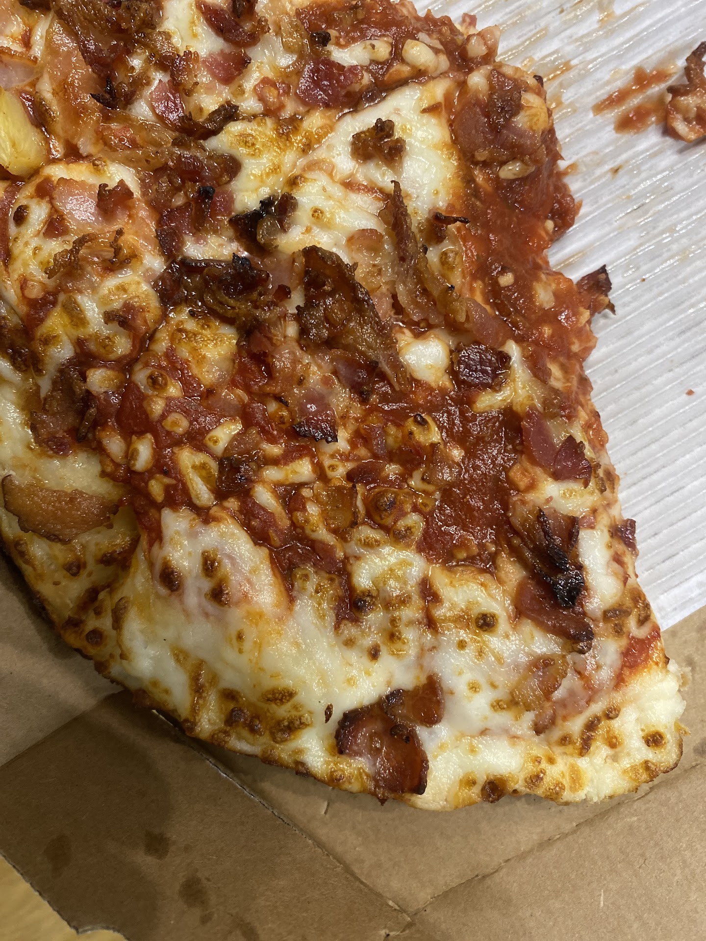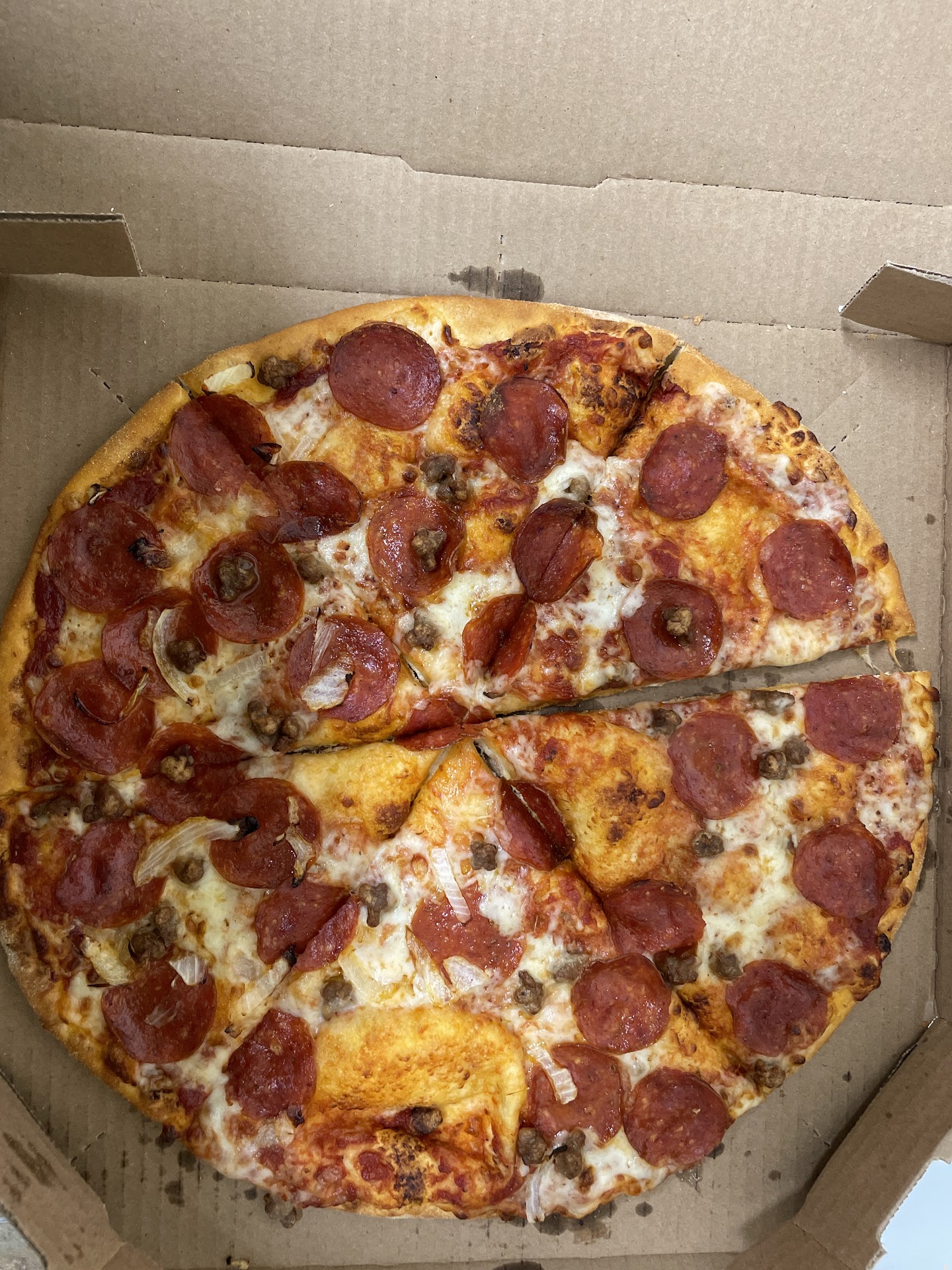 Read moreOrdered online. Good website order as normal. It went bad from there. The order (wings, pasta, and pizza) was completed and out for delivery in barely 5 minutes? The driver did not follow directions and came to the front door ringing the bell and waking up the baby there. Directions was to leave on chair next to side gate. The owner was mad. I had to give them a couple of slices to calm him down. Pizza was cold. Obviously it was premade and tasted like it was made 2 hours ago and left in a warmer to dry out. Thin crust does not do well at all left in a warmer. My wife was so mad she took the pizza and went to the location to return the pizza and complain. The review will continue.. The manager argued with my wife that it was fresh. How do you make a pizza, chicken wings, a pasta bowl box it all up and be out the door to deliver in 5 minutes? They must have a time machine. The manager finally asked what my wife wanted after arguing about all the complaints. Terrible management. Should have been a simple apology and offer to make a fresh one or refund. I hope Dominos Corporate is listening. This person should not be a manager. Poor example. WILL NEVER ORDER FROM THIS LOCATION AGAIN.