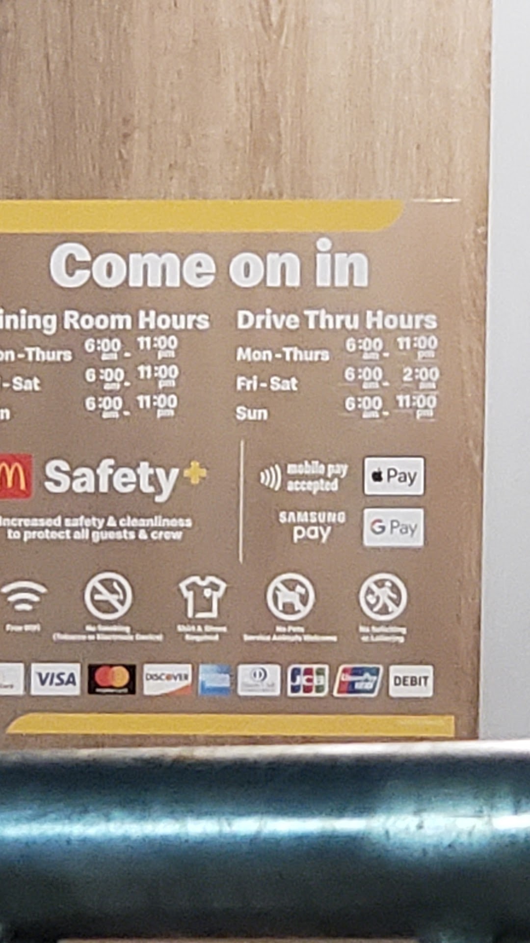 Read moreMy son did a summer soccer program sponsored by Mc Donald's. He wore a uniform full of Mc Donald's colors and insignia. He looked like a happy meal basically. In any case he was given a gift card to use at the store for his hard work. We are down to about $2 and change. We went to the store and the cashier could not figure out how to use it so called the manager. She came to try to help and advised that it would not ring up when she swiped. I used to work at a movie theater when I was younger and noticed they were using the same type of POS (Point of Sale) computer. I advised she should try to enter the card info manually. She replied that there was no way to do that. I responded then why is there a number and code printed on the card. She told me that I had to contact the number on the card to figure it out. I noted that she was getting paid to stand there and watch me do her job. She did not provide me with any further help in the situation other than swiping a card on her POS. I know this is such a basic issue as far as not being able to use $2 and change for a transaction, but what has happened to customer service since I was working it in the 90s? It's like they don't even try any more and I have to do all the...