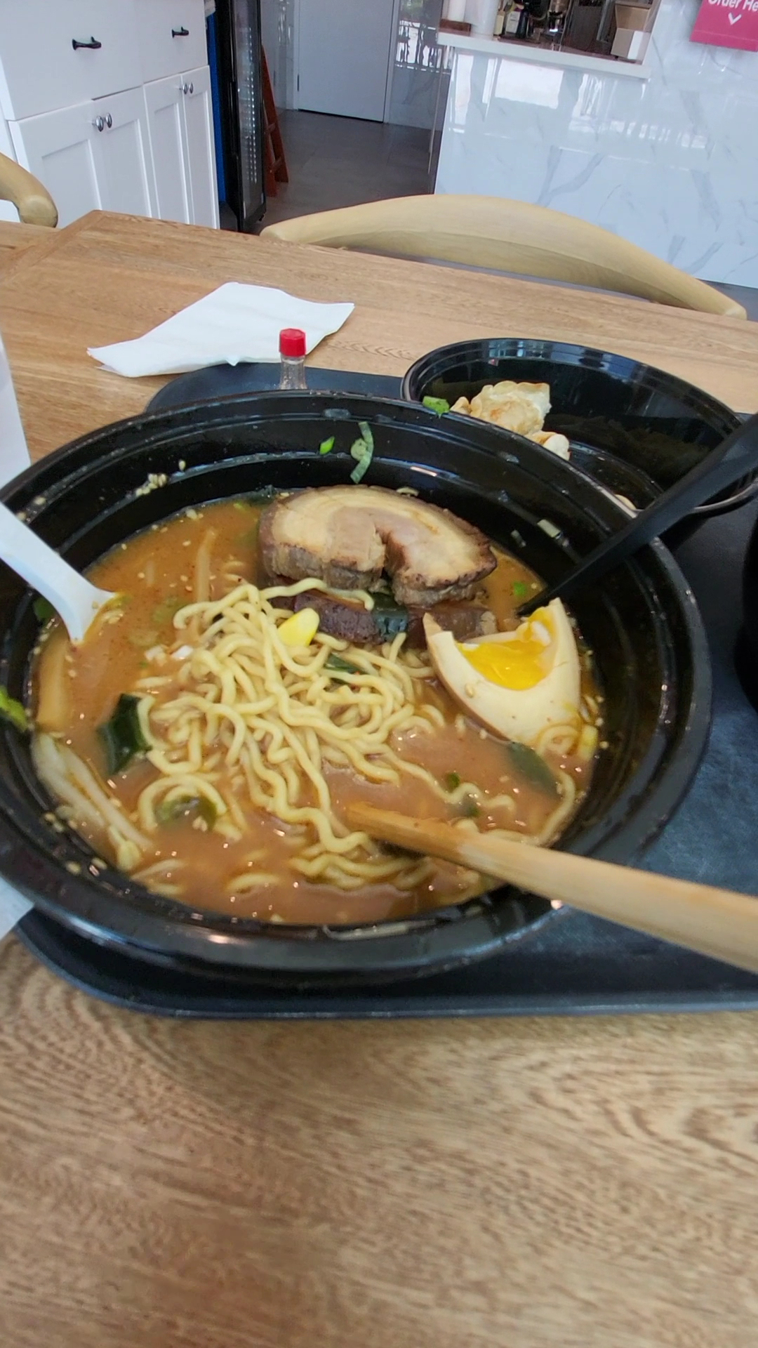 Read moreThe ramen was overpriced for what you got. We dined in and the plastic silverware was tiny and uncomfortable to eat with. The broth was not very flavorful and it was extremely oily, I usually drink the broth thatâs left over in my ramen (my favorite part) but I felt gross doing that because of how oily it was. The edamame was amazing, the salt was caked on the pods. The noodles looked and tasted like the ones that come in the instant cup of ramen. We also got some sort of seaweed in our bowls that wasnât listed in the ingredients of what we ordered, Iâm not even sure what it was. This is closer that the usual ramen place we go to (Ichimi) and we figured that it would be cheaper since it has more of a fast food vibe than a restaurant vibe but it was about the same price, much rather make the 30 minute drive to the Gables...