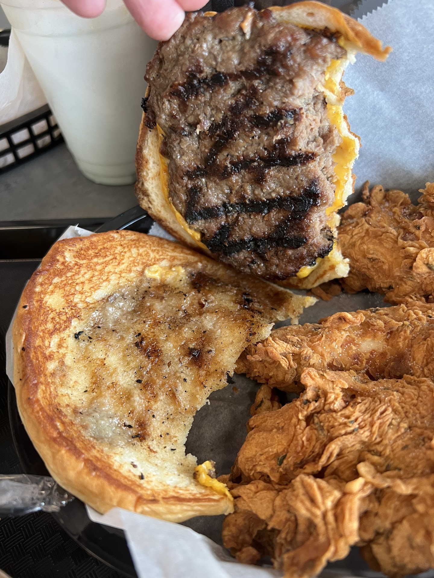 I was so excited bc they just opened up in waking distance. I spent $30 on 2 people. The onion rings were so HEAVILY coated in a Cajun seasoning that I spit them out instantly. It was horrific I didn’t eat them. As bad as I wanted them, you could visibly see the seasoning drenched on…I got the BLT also which wasn’t bad just the beef bacon was hard to eat, probably because it was beef bacon. My boyfriend loved his burger the egg and bacon one ! but overall the experience wasn’t worth the price. Might go back to try a salad some day but overall not for us.