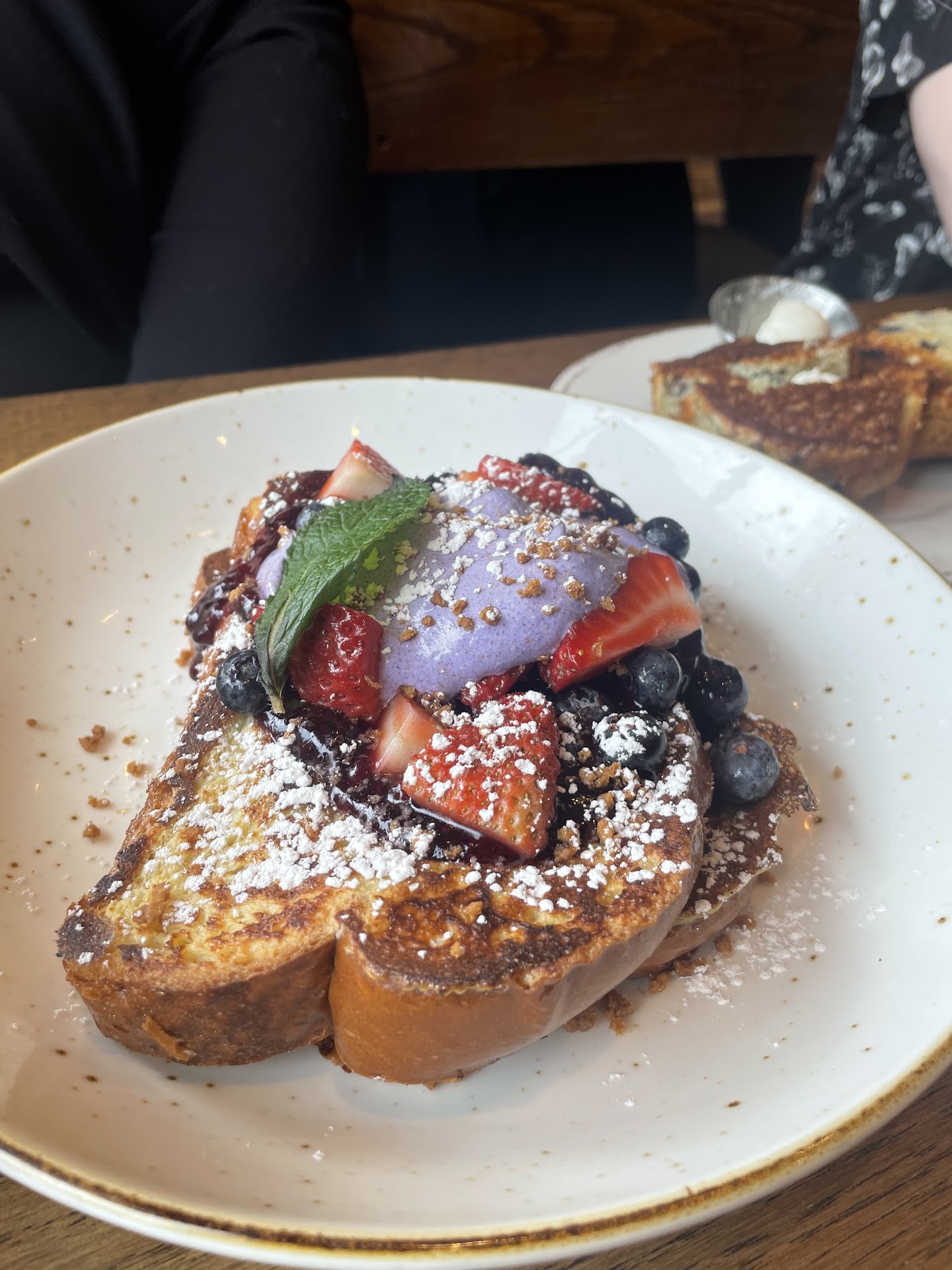 We were silly to think we could just walk in to a brunch place on a Sunday before/after a holiday (the Sunday between Christmas and New Years) at 10 am. Silly, silly, silly. When we spoke with the hostess (who took and entered our name and number before being able to give us a wait time which felt a little weird) we were told 30-40 minutes. And we all know those estimates are hardly ever right. So we check the text that sent to us and there are 25 (!!) parties ahead of our little party of 2. Forlorn, we hover with the mass of people also waiting for their turn. There was a table with bar stools that was offered as a "first come, first served" option, but it didn't seem comfortable in any way. After nearly an hour of waiting, we were finally seated.