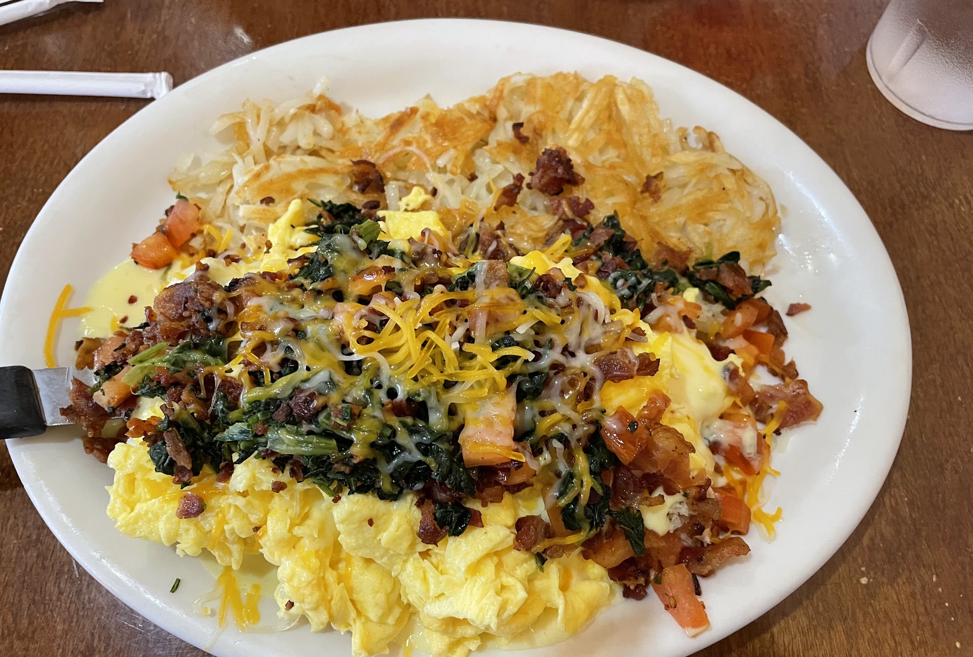 The rating, in my opinion, is a bit high. The service was pleasant but a bit lacking in attentiveness. I had to ask for coffee and water she did bring out our apple and orange juices but then never came back to see if we were in need of anything else. I had to catch her and request the other items. We were never offered utensils we had to ask for then once our food was brought out, so I had to stir my coffee with my straw from my apple juice the waitress didn't bring out the food another worker did and she quickly sat down the plates and was about to walk away and I had to quickly ask for utensils before she got away. I personally feel that servers have a basic obligation to be attentive and pay attention to the basic needs of the client, like providing utensils for dining in a restaurant. There was no regular sugar at the table they only offered splenda and equal or sweet and low, none of which I use. The food was just ok it lacked depth and flavor. You do get good portion sizes, but other than that, it's just ok. The hash browns were bland, no seasoning in them at all, the gravy was also rather bland the biscuits were nice they had good body and flavor, but you were supposed to get two, that turned out to be one split in half. The juice was just ok. I believe the apple was a bit on the sweet side, and the orange juice, according to my wife, was not good. Everything was edible, but I personally do not believe this is an establishment that deserves a rating between a 4.5 and 5.0 it warrants a rating more in the 3.7...