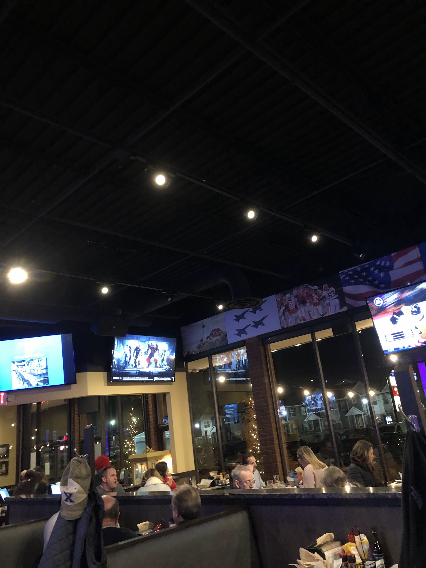 I have rated one star to possibly get the attention of the company. I do not believe our visit deserves one star. We have visted quite a few times and had pretty good service all the way around. The food i would definitely rate a 5. It was very good. As well as very appealing to the eye. Our fries were fresh, crispy and glistening along with there being more than enough. Our sandwiches looked gigantic and very well put together. The wings were nice and crispy, and very cutely arranged on the plate single file on each side due to split sauce, and there wasn't a saucey mess all over the plate either!! It was kinda pricey but for how amazing everything was it was worth it. Our server seemed very friendly. The person that brought our food was very emotionless though and when they were calling out the different items they were pretty quiet. We were saying thank you and got no response. Then as we were in the middle of asking for a few extra sauces and they had already turned and walked away. We tried to get their attention but it was way too loud. I understand it's busy and they have other food to bring out or get together so we didnt care, we were going to just ask the server. Our server didn't come to check on us for a long while. (Which is understandable considering they were pretty busy when we had arrived.) So we resorted to trying to get anyones attention. After a while we noticed a woman pretty close to us at the bar. Tried to get the attention of the young lady. But she was too busy chatting it up with the young guy sitting next to her. She was wearing an ontap shirt, so I assume she is part of the staff. We tried waving towards the bartenders but no one noticed us due to them gushing over this guy and sharing his food. Rarely fixing drinks as the servers stood there waiting. We love on tap. But this was very unprofessional. I'd understand if this woman had been off the clock at the bar hanging out, but by the end of it she had gone around the bar and had begun helping them, as they were now seemingly backed up. The servers seemed to have a very frustrated look as they couldn't decide to wait for their drinks or go check on other things. Probably one of the reasons we didn't get checked on for 20 minutes after we had received our food. So I know it's not a case of her being off the clock. A few times in the past that we have visted, I have noticed the same thing happening with the same guy. That's why I have finally decided to write this review. I've worked for restaurants before and this would never have been tolerated. This should definitely be something that you should look into. I believe it makes your company look bad and unprofessional. I understand it's just a sports bar but the new ontap vibe gives a sense of professionalism and I believe you should try to keep this image. We never were able to get anyone's attention and just decided to eat the rest of our food without the sauce. The server came around and was seemingly apologetic about not having checked on us sooner. I appreciate that she had not just left us annoyed without any explanation. She was very attentive and sweet after that. It's very hard to come by actual good servers and I'd commend them if I had...
