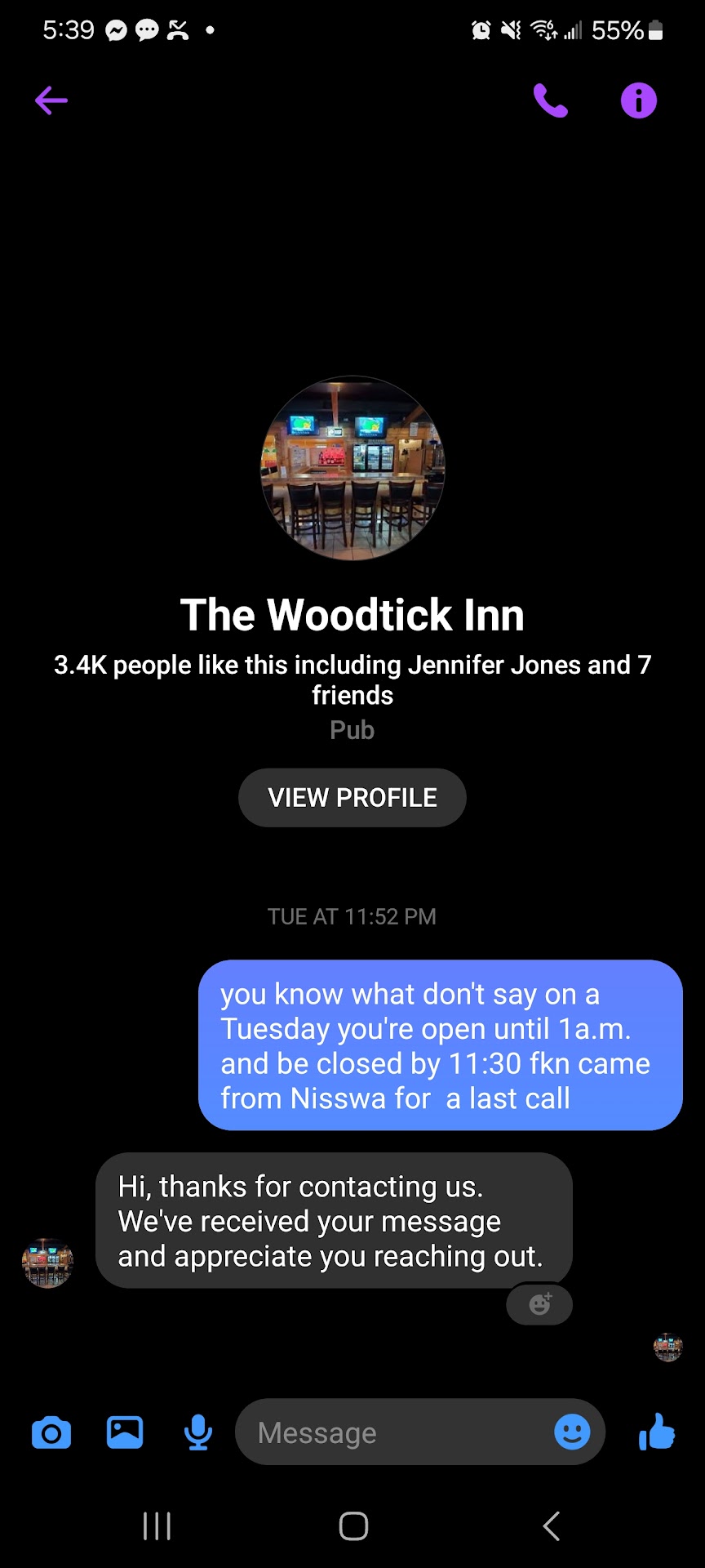Read moreI have been going to wood tick inn for over 18 years through ownership and closings. Love pool tables, games and unique atmosphere . Used to have a bartender from South Africa and my son and I loved to sit at bar and listen to him talk. I have turned 100's of poeple on to this place -on their way up north -to their cabins as well as my friends coming up to visit our place. Newest ownership gave me a final reason to spend my time and money at the bridge. First, couldn't buy a beer that was 20 oz. Ok, trying to save money "I get it". Just today stopped in for a beer and was told had to spend $15.00 to use my credit card. See ya! Last time I will be promoting or supporting this establishment. When ownership makes ignorant decisions to save the dollar I'm gone. What percentage of people going up north bring cash vs. Credit? If I'm in the minority than I will spend my minority...