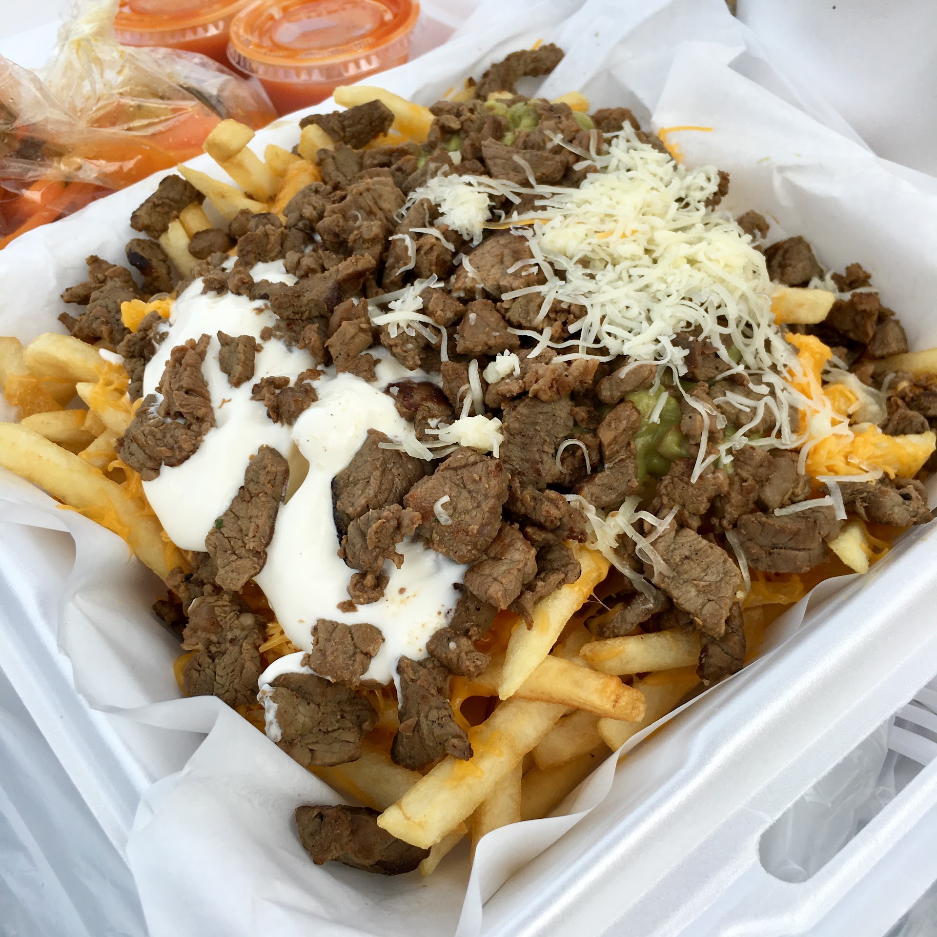 Fear not, for the carne asada fries come to the rescue. Slightly overcooked skinny fries that remain crunchy, even on the drive home. However, often times, they don't last that long because, against your better judgement, you choose to eat there even though it's freezing cold -- your stomach simply can't wait long enough for the drive and ignores the chills that run down your spine as you sit on the icy concrete benches. A cornucopia of glory, separated only by zones of sour cream and guacamole, but brought together by melting cheese, it is simply a thing of greatness.