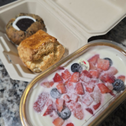 Small shop with delicious desserts made in- house. The owner was very sweet & answered all of my questions. I bought the "Spooning Scone" that is described as a cake in a jar. It is not- this is an all out decadent dessert with a perfectly baked scone topped with a sweet cream custard-like on top & fresh fruit. It took all I had to NOT inhale this. So good! I also ordered three packaged Dacquoise that I was told were the cousins to macarons but 15 times better. These were definitely better than any macaron I've ever had. The cookie shell is soft but flaky & the cream is buttery, slightly sweet & melts in your mouth. I also bought my daughter a s'mores cookie & oreo brownie. She had the brownie & said it was yummy. She's saving the cookie for later. I highly recommend coming by for a sweet treat & supporting this small business. I know...