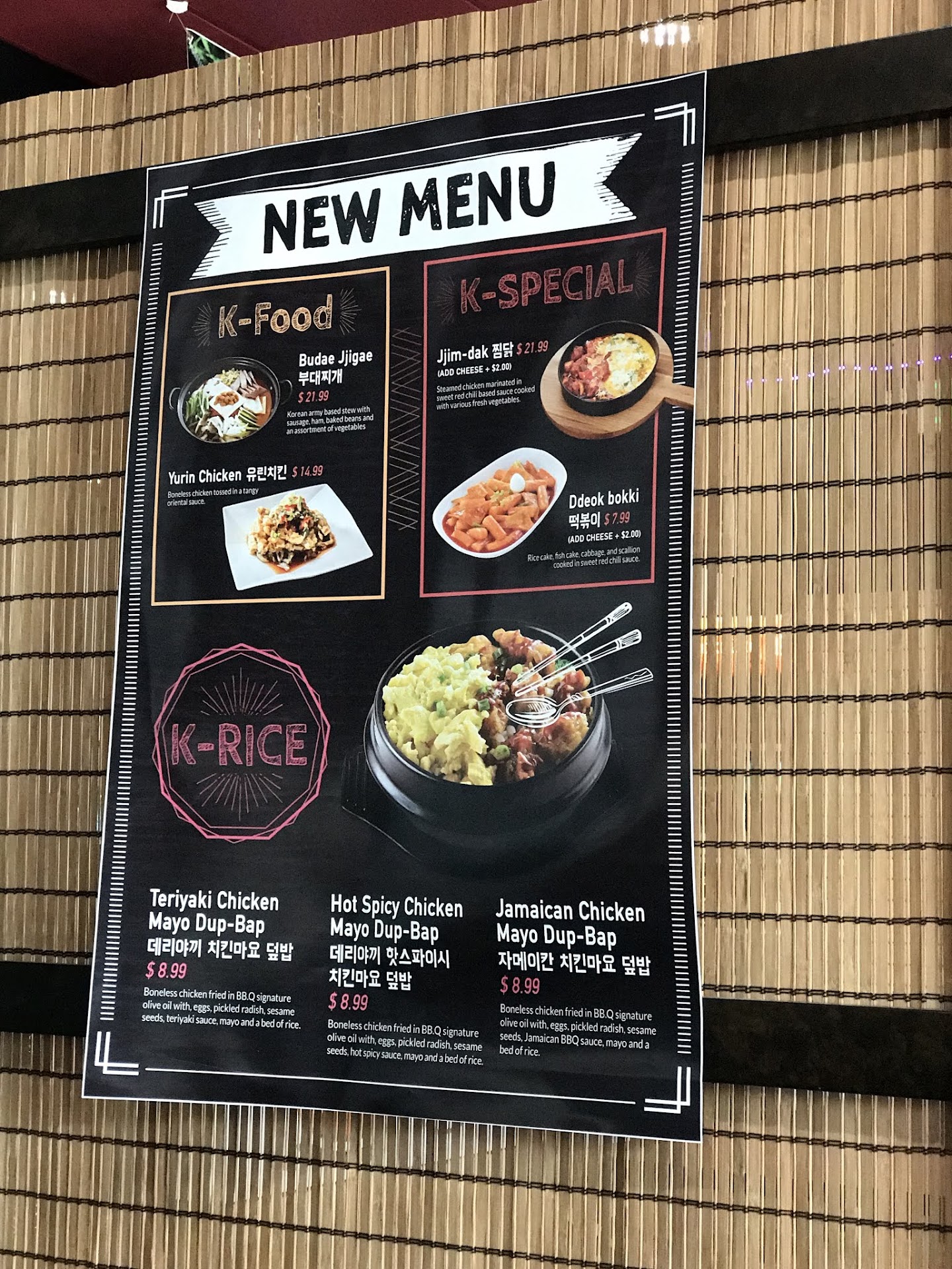 ย ย ย Read moreBbq chicken is definitely a place you go to for the food and stay for the vibes! We ordered the snail salad, honey bbq chicken and spicy pork cupbob. The snail salad had a excellent amount of snail, salad, and noodles. The spicy pork cupbob was delicious, balancing flavor. Service was quick and polite; no complaints at all! Even i ordered snail salad the new owner packed extra sauce and when i come home and ate still So fresh The interior and kpop music really encourage you to come and have fun with a party; I didn't get any alcohol this time but I look forward to coming back with a group to fully appreciate the vibes. When you go please try snail...
