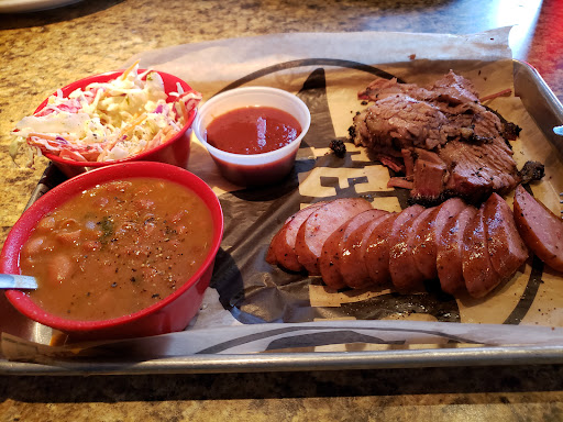 Read moreTried for the first time with my wife and parents. It was their 40th anniversary. My wife and I arrived first and secured an outdoor table near the stage as there was live music. We were greeted promptly and asked for drink order and appetizers. Upon returning with our drinks we were asked if we were ready to order even knowing 2 more people were on their way. When my folks arrived, they were greeted promptly and asked for drink order and appetizers. Immediately upon returning with drinks we were asked if we were ready to order. We said no. They literally just say down. It was like we were being rushed even though 10-12 tables outside were empty. The waitress soon comes back and says "I need your menus, we are short on menus and others are waiting and ready to order". Our party of 4 had to share 1 menu because we weren't ordering fast enough? LOL. Have you ever considered ordering enough menus for every seat in the house with extras to account for lost/damaged and to go orders? Can't afford menus for everybody even though the house wasn't packed, but you sure do have an upcharge for EVERYTHING. Extra BBQ sauce, upcharge. Extra salsa with chips, upcharge. My 2 meat plate I ordered came with 2 sides. I wanted green beans and the "loaded potato". Upcharge. Loaded potato side costs extra, no problem. I get it. Menu says loaded potato comes with butter, bacon and cheese. I got butter only. In any case, shouldn't a loaded potato be butter, bacon, cheese, chives, sour cream, and maybe even jalapenos? My mom ordered the rib plate with tots and potato salad. She got cream corn. My wife wanted a soda refill during all this..... Upcharge. My dad's brisket loaded potato tasted like it was twice baked two days ago. Should have been turned into potato salad next day, not served as leftovers. During all this, my beer sat empty for at least 15-20 minutes. I had to ask for another. You know how a BBQ plate comes with bread, onions, jalapenos, and pickles? The menu literally said relish by request only, yet was freely given to all. I hate pickles. Can I substitute those for extra onion? Let me...