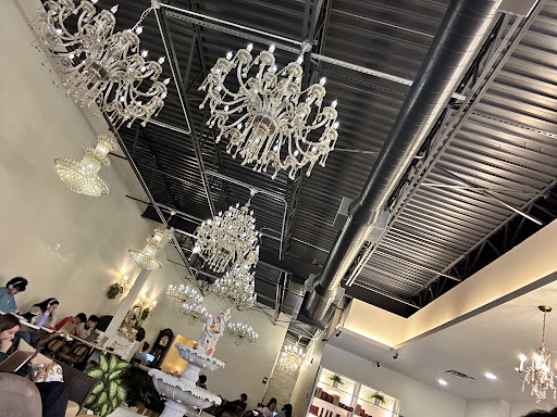 Read moreSort of an odd place in the middle of nowhere but there aren’t any other tea or coffee shops this big in the area, so it was perfect. The seating is varied for individuals, pairs, groups studying or just to chill. It’s really more of a study spot. I’d say 90% of the people were on a computer studying. There are tons of outlets to charge from and a back room reserved for groups of 3 or more. The decor is cute. 21 or so Chandeliers and a Greco-Roman, Asian fusion Paris street cafe decor and feel.
