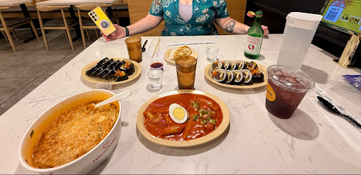 We got a bit of everything Gimbap, tteokbokki, ramyun, dumplings, and some soju. Everything was so delicious and filling, the dumplings were juicy on the inside but crispy on the outside and the rosรฉ tteokbokki was creamy and had a great flavor balance with perfectly cooked rice cakes. I got the spicy fish cake gimbap and my partner got the bulgogi gimbap both of which were amazing and they come with your choice of a dipping sauce which just elevated them even higher!