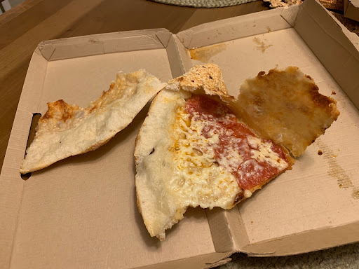You couldnt even get the simplest 2 topping pizza right. Pepperoni and sausage. How do you forget sausage AND CHEESE?! Literally pepperoni and sauce. How?