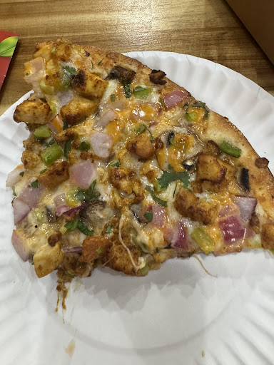 We got the Chicken Curry Pizza and it was AMAZING! I was so hungry I took a couple of bites in the car and was so impressed. My family loved it too. Each slice was well seasoned, had a great kick of garlic, and also had so much toppings/veggies. The slices were big (we got the family size) and we ate the pizza for like two days after.