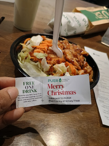 Read moreMe and my family have been coming here for awhile now😍😊 We adore the place!! Closest one in our neighborhood of Fry road and hwy 529🚗🚦 Even though I noticed the cups got smaller🤨🫣🥴We still appreciate the neighborhood coffee shop☕☕🍵🍵🧋🧋🥤🥤 They are so nice, sweet and accommodating for the community🖤🤎☺️😊 I am assuming that's the owner I always speak to, when I am trying to get my free stuff military discount or use my coupons or him just speaking in general He's a very sweet man. I remember a woman used to be here also that might be the owner also ☺️😊 But he is so awesome and he makes sure me my husband and my kids get what we want even though it might say something different in the coupon or whatever He's very accommodating 😚😚😉😉 Love the way they have coupons set up and I get text messages even though we don't celebrate the holidays I still come by because the coffee is good and the atmosphere is relaxing!! Even when I want to do some work they have free Wi-Fi a machine that you can order from when the line is long it's all around relaxing place!!☕🍵🧋🥤😍 The baby's behind the register are always willing to help you with anything!! I love the noodle bowls spicy🌶️🌶️ I tell all my friends family and school makes to come here!!🍝🍝 Just know we Appreciate you guys hard work that you do for the community very much!! THANK YOU...