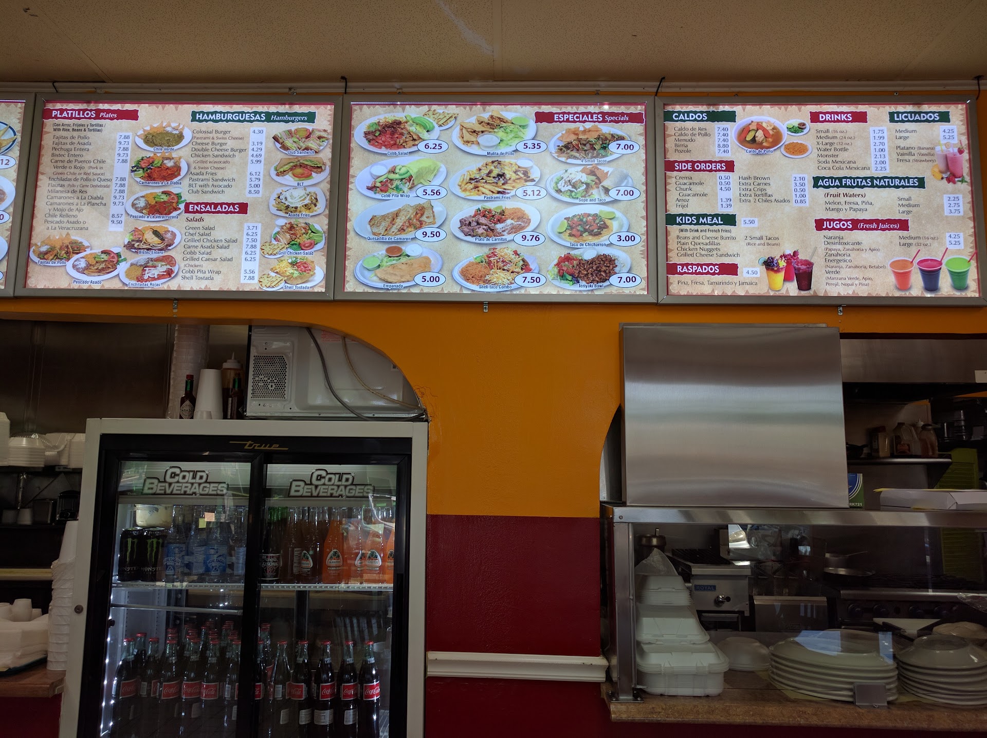 Prices are relatively affordable, considering inflation. The special plates and breakfast entrées are nice options. There's a salsa and condiment bar, fountain and bottled drinks, desserts, and much more.