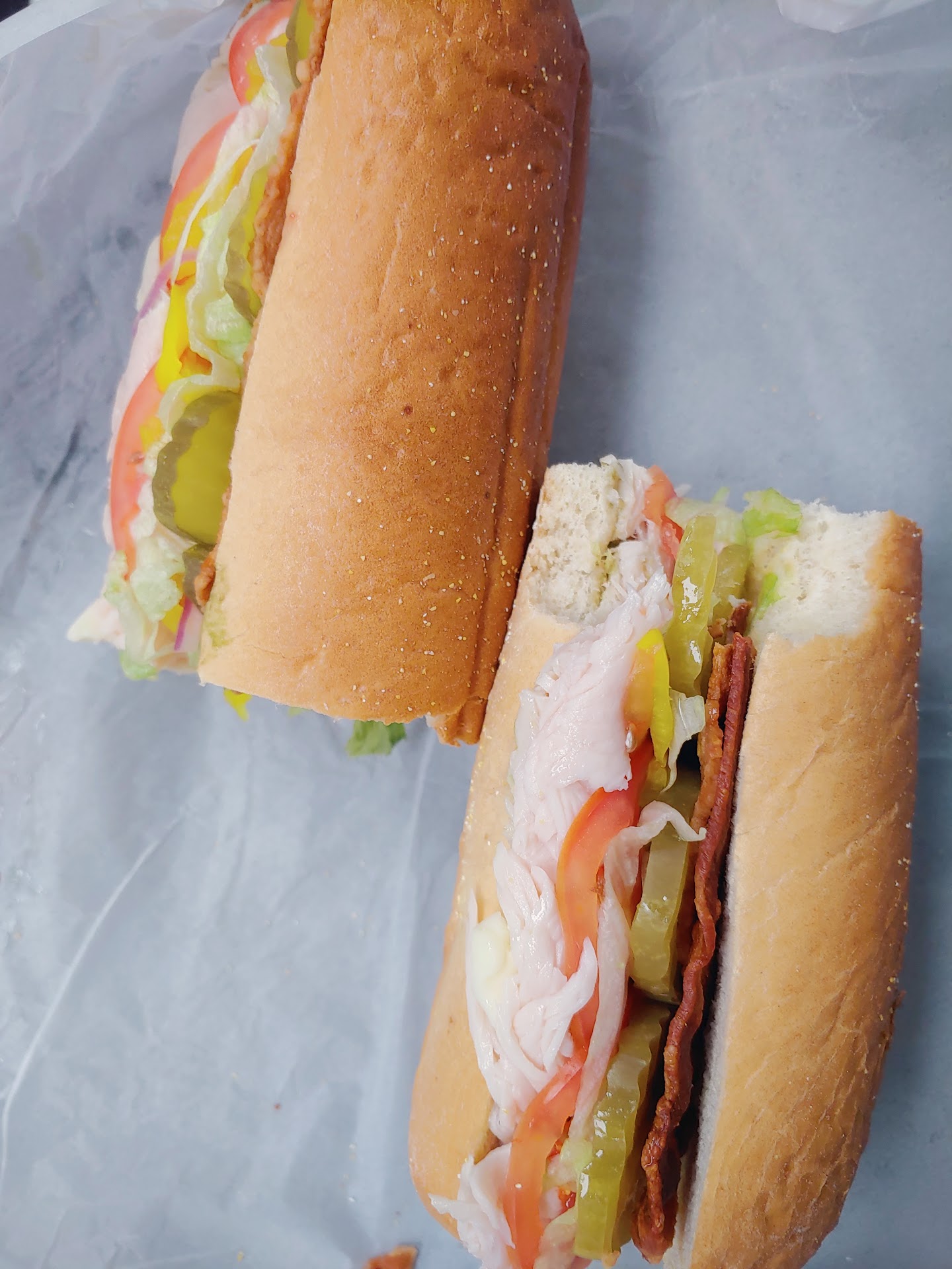 The sandwiches are delicious. My go-to is the Turkey Bacon Avocado Cheese with everything on it, you can't go wrong with that. I've tried a few others and they are just as good. I think it is the bread that really makes the sandwich. It is light and fluffy and soaks in all the delicious goodness from the sandwich. The sandwiches are prices fairly and are good sized. I normally get a large and eat half right away and half later.