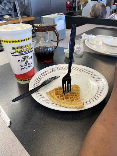 Read moreI came in after work on Saturday. It wasn’t packed. My order was wrong, which I mentioned 3 times. I also noticed a family that was there before me seated hasn’t received their food and their waiter didn’t seemed to care. The family was respectful but becoming impatient. The staff were too busy goofing off, cussing, and getting the orders for their friends that came in. Several customers were complaining about the wait time while their friends received their orders hot and ready before ALL the paying customers seated. My waitress was so loud and unprofessional it wasn’t even funny. She did comp most of my meal for it being wrong but she was a mess. I’ve been to this location before at night a few months ago and it was NOTHING like this. I had no idea it was this dirty during the day and the staff was trash. I couldn’t wait to leave… no tipping either. I wish I would… just because Waffle House has a bad reputation for the behaviors that go on in many of their locations doesn’t mean the staff should strive to keep up that ignorance. Pretty embarrassing. Food was delicious, but NEVER again at...