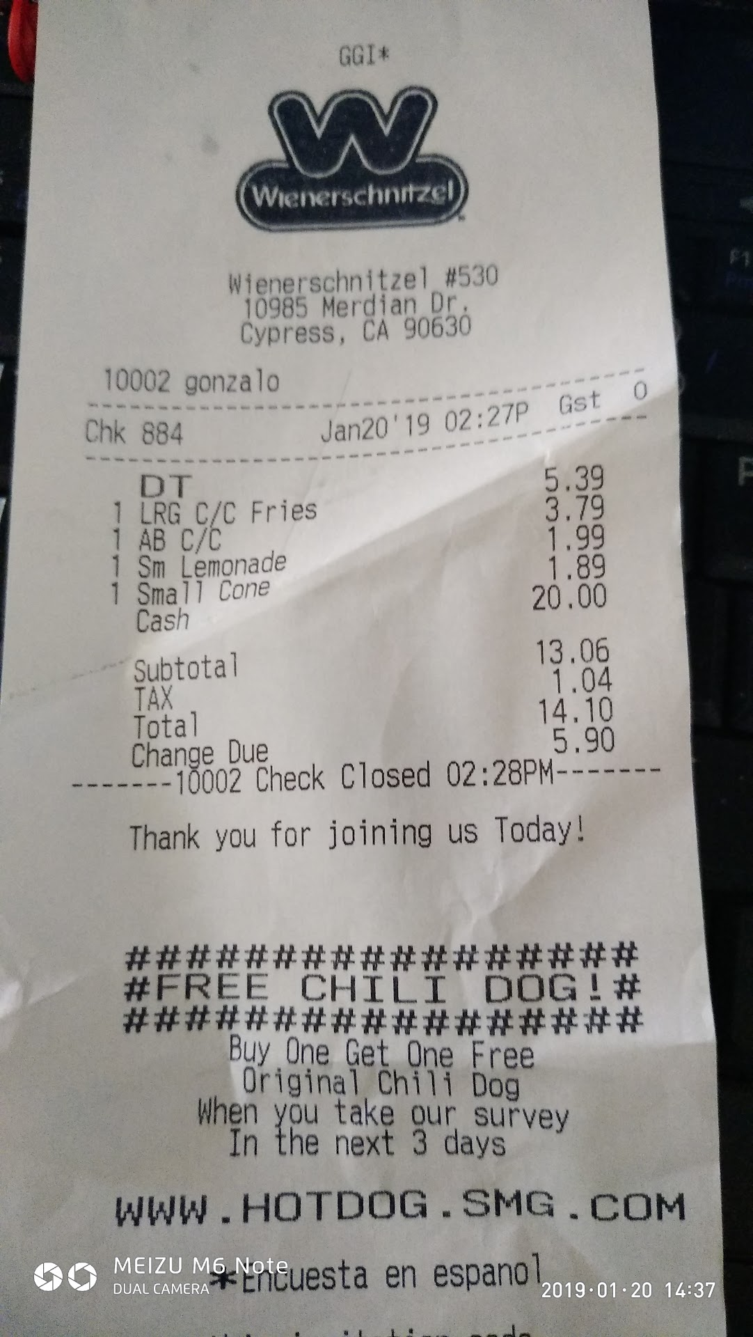 Read moreFood is great when I get my food. They never seem to understand what I'm trying to order. Alway have to driver to the window to order. Maybe it the street traffic noise. But most of the time at the window they have a hard time understanding. Then when I do get my order I check it in the parking lot before driving home and it never fails its my comb that is missing items. And never the rest of my family. Seems like workers there are high or on something. They seem frozen like statues. I've seen it with 3 different employees, different time's. I rather drive to the next wienerschnitzel than go...