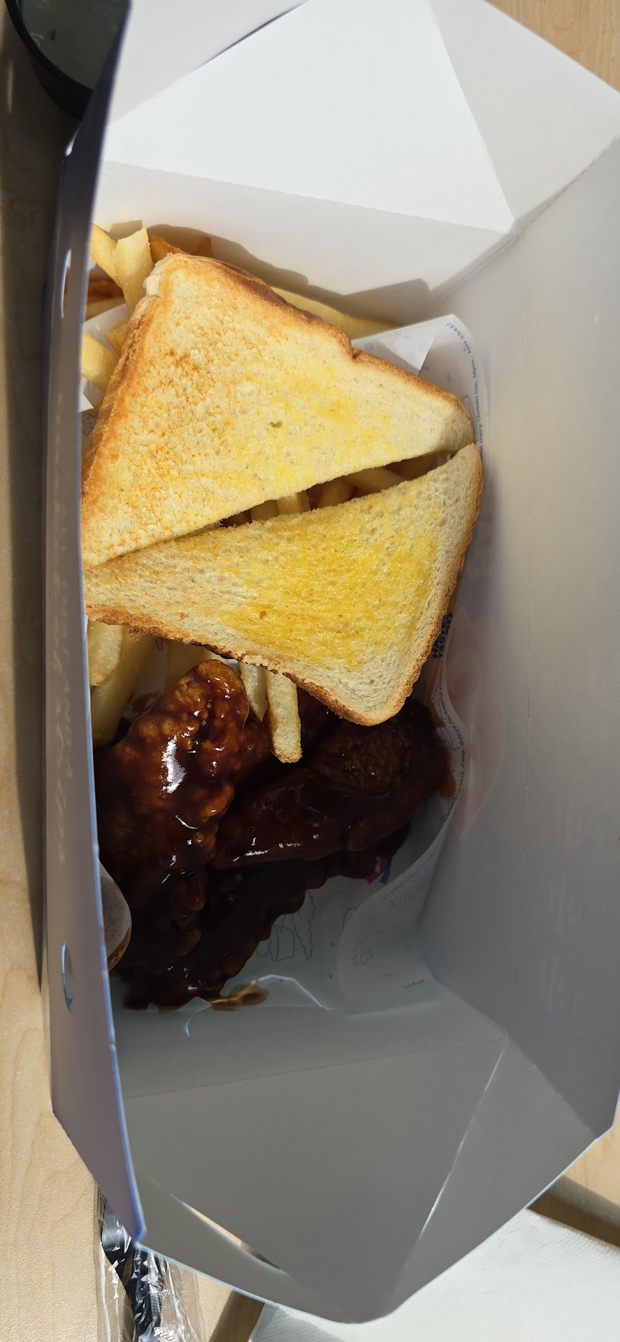 Read moreFood was basically on par with any Daury Queen I've ever been to. My kid's m&m ice cream didn't have a single m&m in it.. just chocolate, multicolored dust like you'd see at the bottom of an old gumball machine. I was amazed by the complete lack of customer service and professionalism. The cashier gave off the vibe that it was a pretty big inconvenience to take our order and broke up my ordering process to scream into the back. Her screaming was unintelligible, so I couldn't say what it was in reference to. We dined in, so we were treated with her screaming at the back a couple of time. The best part is, the lady with zero professionalism and zero customer service skills is the manager. I gave two stars because the rotisserie chicken things I got were pretty good. The M&M dust my kid got was a pretty big...