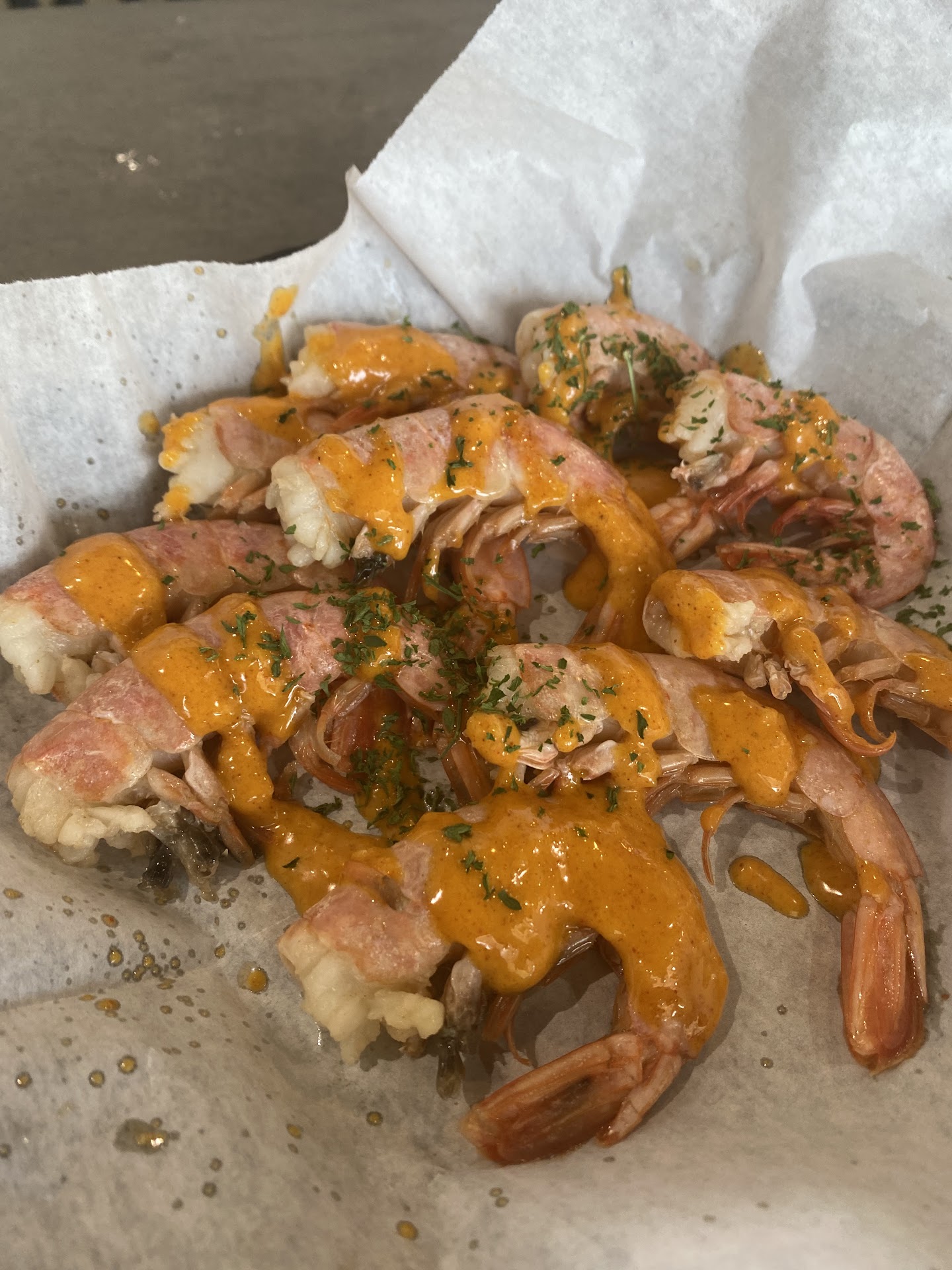 Read moreI seen this place on FB and just so happen to be in the mood for crawfish and shrimp. I would say the flavor was good and different and that’s what I liked. It was spicy but not so spicy you loose feeling to all taste buds. The garlic butter sauce (additional $3) is definitely needed as without it the food seemed to lack a little seasoning. The crawfish was far better then the Royal reds, the reds were a little under cooked for my liking. I also had the spring rolls with the peanut dipping sauce. I am a fan and really enjoyed these, everything was fresh and the grilled shrimp were flavorful. We also tried the passion fruit tea with mango boba and two different flavored milk teas. Overall it was pretty good, I did give 4/5 stars as it was quite pricy. The crawfish and Royal red platter included 3lbs of crawfish, 1lb of Royal reds, 1 corn and one potato cut in half, no sausage was included, the spring rolls and 3 specialty drinks with a tip cost us $70 pretty pricey as we didn’t leave full and satisfied but left us wanting a...