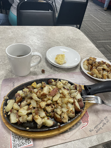 We tried this new location on Sunday and overall it was a pretty good experience. It was very busy as it was Father’s Day morning so that was to be expected, but the staff handled it very well, I thought. The food took a bit long which would be expected however, the couple who came in 15 minutes after us, got their food 10 minutes before us so that was a bit backwards. Our waitress was apologetic though. While waiting, we observed some interesting things like food being touched with bare hands in the kitchen and at the window. Kind of gross. Also found it odd that the entire restaurant is carpeted. Don’t see that often in that kind of establishment. As far as the food itself, it was good, however some of the home fries were undercooked and I mean, like, raw potato undercooked. The flavor of the cooked ones was very good though. Very heavy on the peppercorn, which we personally loved, however I would recommend putting something on the menu or having the server advise that they do have a kick. If you don’t like spice, you won’t like them. The cinnamon swirl pancakes were very good. Highly recommend. The butter on the toast tasted like straight oil. Overall, the food was good and the atmosphere was enjoyable. Cute place. Would recommend if...