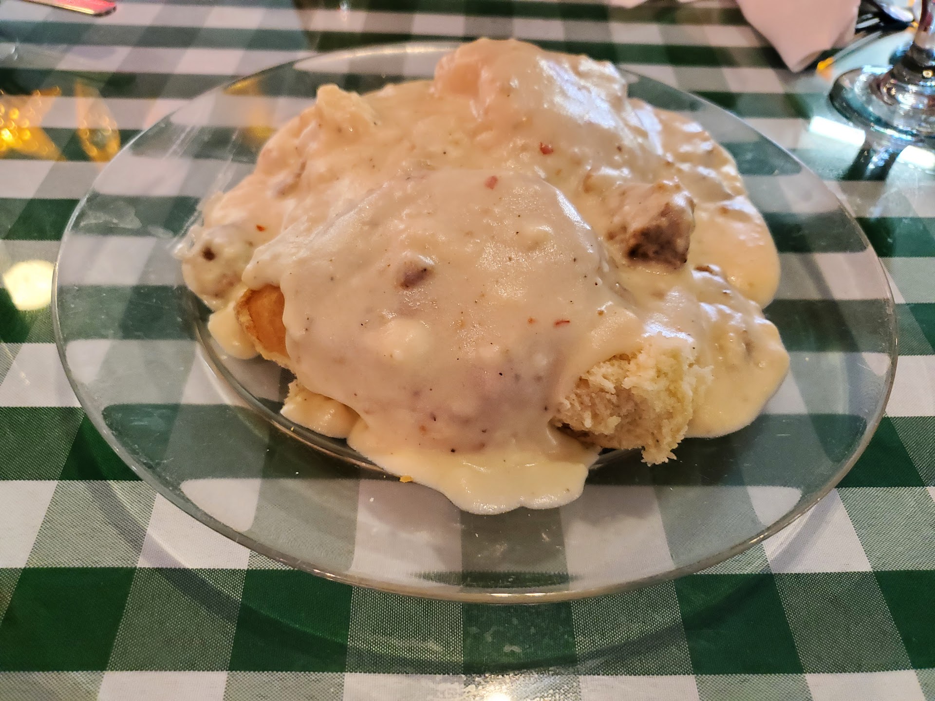Been wanting to eat here forever. Sadly I have to say I was disappointed. We had reservations for a party of 7. Started out great, server was attentive and the mini muffins were very good. 6 of the party ordered hot meals, I ordered a chicken salad croissant. 5 meals came out together, then the other 2 were forgotten about, mine being one of them. When the server finally came back around, we asked what about the other 2 meals? It was like they had forgotten about them. The server asked what meals we had ordered, and we told her. The rest of the party felt uncomfortable feeling guilty to eat while we had no food. I assured them it was alright to eat. When it finally arrived, it is served with broccoli and swiss cheese on top of the chicken salad. Kind of odd, but the menu did state it was served this way and toasted. Well it may had been toasted at some point, but was ice cold by the time I was served. Trust me cold congeled swiss cheese and room temperature broccoli on top of chicken salad doesn't work and I love broccoli. I scraped the broccoli and cheese off the sandwich because it was horrible ice cold.The bottom of the croissant was hard and I had difficulty even cutting it with a knife. I finally gave up, and just picked out the chicken salad with a fork and ate only the chicken salad. Chicken salad was not too bad. It was served with a scoop of potato salad. Normally I love potato salad, but this was extreme with dill pickle. Just felt it didn't work for me. My glass of tea was almost empty when my food arrived, .Server said she would be back with tea. That never happened until we were done eating. Not once were we asked if everything was alright or if we needed anything. Disappointing. I had eaten less than half of my plate. It was obvious I had scraped all the broccoli and cold cheese off and not eaten the croissant or potato salad. I was never asked if anything was wrong with my food. Disappointing. I then went to pay the bill. I was finally asked how everything was. I answered honestly. The cashier really didn't want to know. I also told her about the huge amount of time it took to get the last 2 meals and how uncomfortable that was for the people who's food had been served much earlier. I said what I really didn't get was that mine was a cold sandwich and they had hot plates. The response was, well that must be the way the food came out. Again, no one cared. Disappointing. You may by now notice a theme, disappointing. Based upon my visit today, this will be my first and last visit. I realize it has new ownership, but they should just change the name and not tarnish the once proud heritage it once had. Others in my party had similar disappointment with their meals verses previous meals that had eaten there before the ownership change, but I will not...