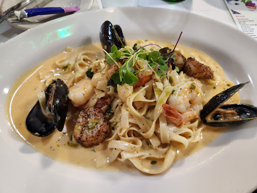 What a GEM! We love this place and can't wait to return. First time we tried it was about a year ago and it was to take to our family's home. Even as take-out, it was fabulous. We're sad it took so long to return but we finally made it back a few days ago and it did not disappoint. The french onion soup is some of the best I've ever had. I make it at home and know how long it takes and how much quality ingredients make the difference. It's obvious there's so much love and quality that goes into it. It's a generous portion that's easy to eat - the cheese isn't super stringy like you'll find in many places. The broth is rich with flavor with a slight peppery kick to it. Amazing! My husband had the meatballs and loved them. I had the salmon in puff pastry on a very generous portion of risotto with a lobster cream sauce. I never have trouble finishing meals but my husband had to help me with this one. It can easily feed 2 people. It's huge, rich, flavorful and cooked to perfection. My only criticism would be that it was a teeny bit salty for me but I don't like a lot of salt in my food. It's likely on point for most others. We were full but my husband insisted on dessert so he ordered what I think is the chocolate lava cake. It was fantastic!