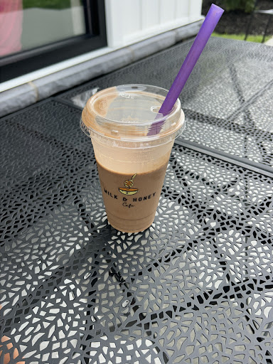 Read moreI was very excited to try this new coffee shop! All of the creative drink options I saw online made me want to give it a try. We ordered the dirty banana smoothie, campfire smores latte, and milk and honey latte. Unfortunately not pleased with the smoothie. The shop was very cute with seating inside and out. We asked the cashier who was ringing up our order what the smores latte was and she said âum I donât really know like really chocolateyâ. I was unsure if I should of still ordered it because she didnât even know the own drink. The campfire smores latte was so pretty looking and had good flavor. It was very difficult to actually drink with all the fluff and toppings. Not much coffee and had to eat the toppings with a spoon. The milk and honey latte was good. Recommend! I was very disappointed in the dirty banana smoothie. $8 for chocolate banana milk. This was the most watery âsmoothieâ I have had. There was no iced blended in this drink so it was just milk. I do not recommend getting this if you are looking...