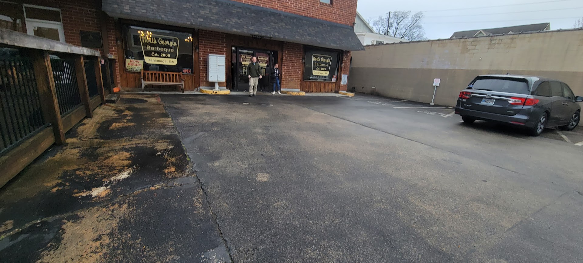 The food review: GROSS! I HAD TO SIPHON through so much fat to get meat from our bbq Pork. It didn't taste smoked. It just tasted plain, unseasoned, and boiled. The potato salad was drenched in Ranch of some sort and the beans were not edible. They were SO SPICY! I felt like I was eating scraps from a strangers plate. Never, again! I will drive all the way to Dawsonville for Big Ds before I ever eat...