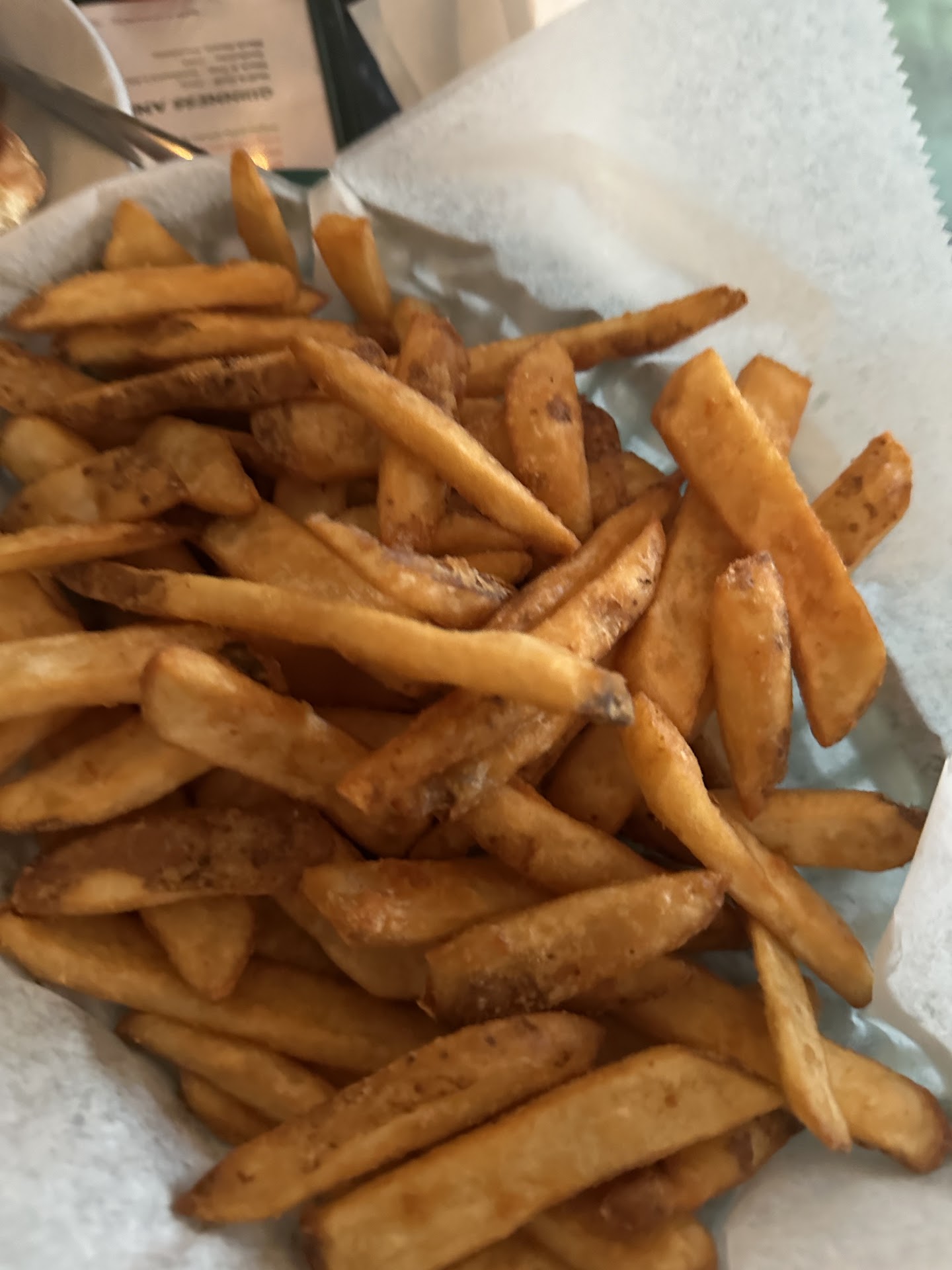 Now, let's talk about the fries. We ordered them beer-battered, but they arrived without the beer batter. However, they were still the best fries we've ever had. Even when they cooled down, they remained absolutely delicious.