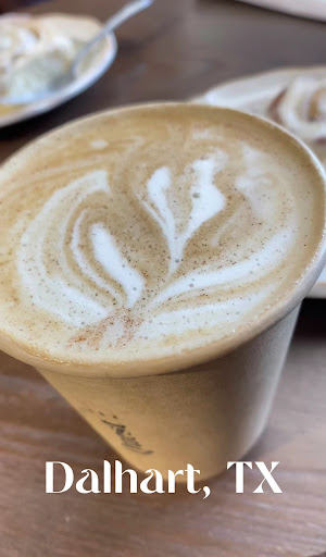 Read moreWhere do I begin⦠Dalhart, TX has taken over the coffee scene with their delicious beans. The Roast on the espresso is light and divine with nutty and toasty notes. I could see the crema in my latte shining through. I had a specialty oat milk latte and my husband and I both had cinnamon rolls. Customer service was superb and the owner/barista is very friendly and nice. If I could give you 10 stars, I would. So, so glad my husband and I stopped by. I was quite surprised and amazed that little ole Dalhart, TX has a top tier coffee shop like one you would find in...