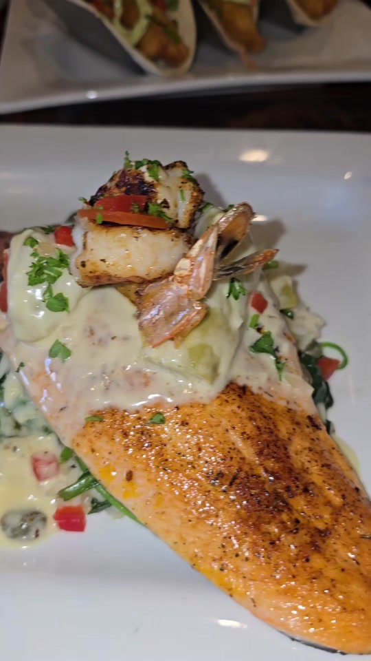 Read moreI'm the adventurous eater in this duo, so I was shocked when the other half chose this place as a surprise. Upon entry, everyone was CoVid safe. Masks were worn properly and the clean up and atmosphere was amazingly clean. Bathroom included (wonderful smell and extra clean). Our server was Ody. Who was patient and amazing and super helpful with her suggestions. We took a while ordering but she gave all of the right advice. We started w/ the Calamari. Delicious. Fried fresh and the sauces that came w/ it were a treat as well!! THEN...walks over Alfredo!! He was pleasant, comforting and he brought us three of the most amazing soups to try!! The clam chowder, gumbo, and pablano soups were so fantastic, we ended up just drinking them all. lol. He told us all about his family and their businesses. He was super encouraging about happy hour and the new Alfredo magarita. (I'll be back for that next month for my bday). But let's talk food peeps. I had the shrimp ravioli w/ the most amazing sauce and roasted tomatoes. We had the hushpuppies and remoulade on the side (great as well). But the real show...the crab covered flounder and veggies. The picky eater had this and was blown away. We didn't get to the deserts, bc trust me, the food does the job!! Please go, experience these amazing people and their mouth-watering cuisine. It's all a breath of fresh air to our local area. See you all again,...