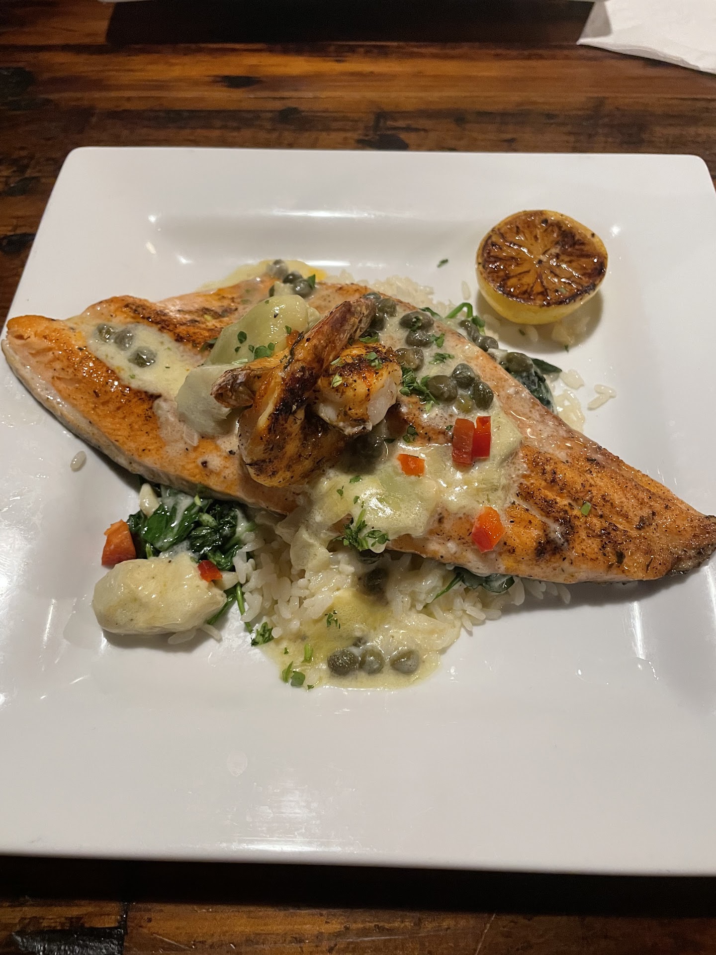 02/17/24 Saturday night. I drop in to grab a bite because I drive by it on way to a destination. Order Cedar Plank Salmon. 10/10. I'm praising God for a great place to eat without having to take out a loan. But wait. What's that? Smudges? On my plate? Omgosh. The plate is filthy!!! But the salmon is superb. I summon the manager as I ignore the DNA of the previous 36 users of this plate because m THAT hungry and the Salmon is THAT good. The manager visits as the waitress brings the next (empty) plate I ordered. Yep. It's filthy too. I show him the plate as I finish the salmon. He says "yes, de washer rinse de plate but our dishwasher no good". I point at him and say YOU are allowing this filthy plate to make it to your customers. Your guy should be had washing the plates. You simply don't have that much traffic here and you'll destroy your customer base. Didn't register. He indicates off night. Naw. He suggests Churros for dessert, that will make up for the dirty plate. I'm doubtful. He brings it I try them. Yuck. Deep fried cylindrical dough tubes with some filling. I eat half. Enough to confirm they shouldn't be served as food AND greasy. I expressed shock at first because I told him plate looked clean. No. No it wasn't. $40. Not...