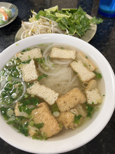 Tried this place for the first time after living down the street for years and I’m sad I didn’t go sooner. There is just two people running the restaurant, I believe a husband and a wife. He runs the front and she is in the kitchen. It’s just the two of them so be mindful of this, if they’re busy there will be a wait. Be patient with them! The man was so friendly and sweet. He didn’t speak a lot of English but it was still very easy to communicate and order what we wanted. They weren’t able to accept anything but cash when we went, but there is a convenience store with an ATM next door and a 7-11 across the street. I was pleased to see quite a few dishes with tofu. I got the pho with tofu and my husband the pho with brisket. The broths seemed the same so I’m not sure it’s actually vegetarian, I wasn’t bothered by this but if you are strict you’d need to ask or order something else. We had our food within minutes, (the broth would be made in advance so they just have to add whatever is ordered to it) and it was very fresh and tasty. Portion sizes are huge! Comes with lots of garnish as well as multiple hot sauces and hoisin on the tables. I will definitely be back to support this family run small business. I can’t wait to try more from their menu as well as get pho in...