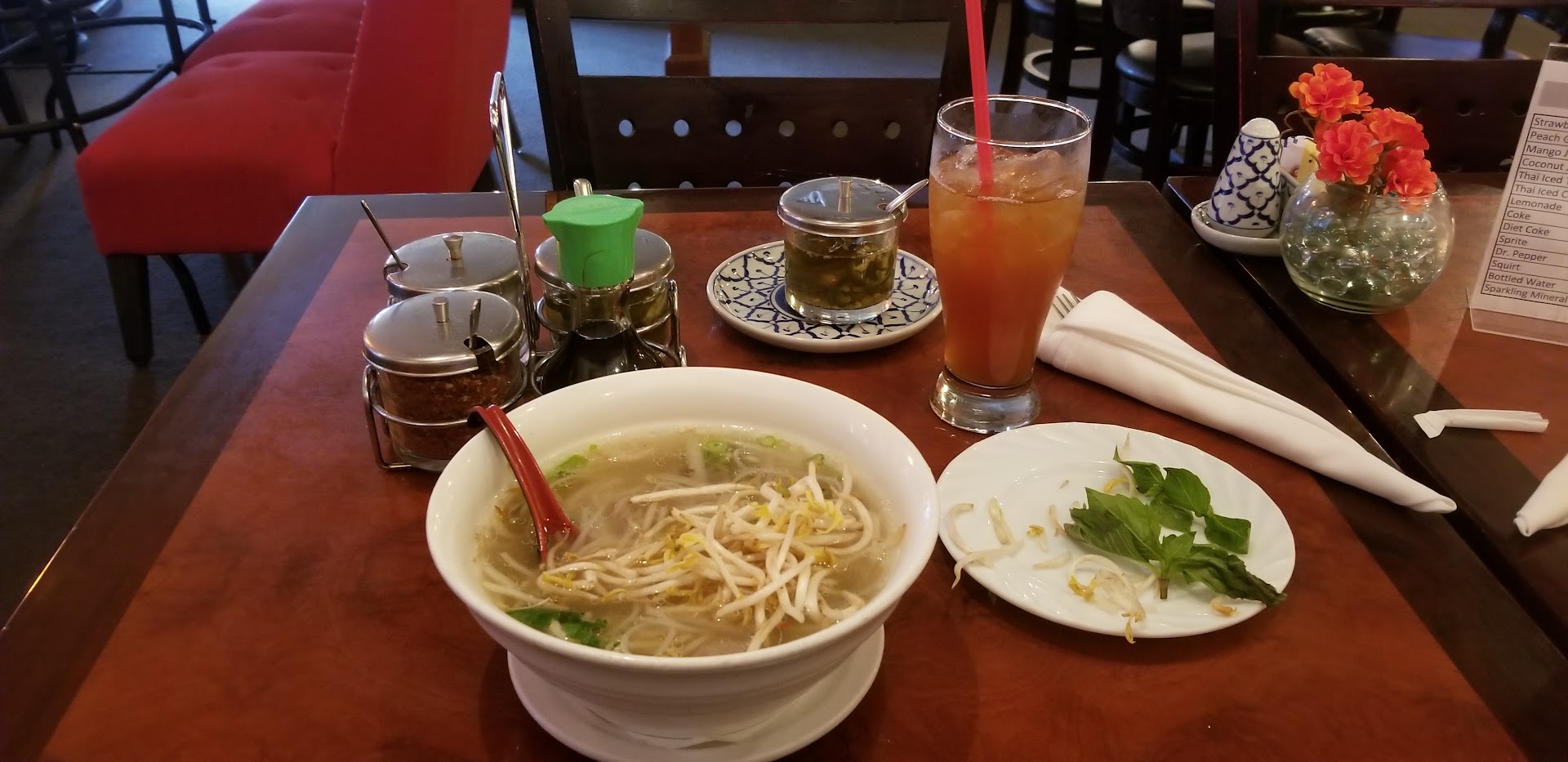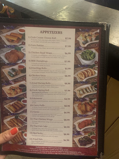 Read moreThese reviews have to be fake. The service is terrible. There was only 2 other tables when we first walked in and 1 of them left about the time we sat down. The waitress just threw the menus down and basically told us to sit and walked off. Took several minutes to even get water and wasn't asked for drinks or appetizers, someone else came and gave us another set of silverware and walked off quickly, still no drink order or appetizers. We were there for over 10 minutes before being asked what we wanted. The gyoza was cold, flavor was good but they were cold, my wife is pregnant and wouldn't eat them out of fear they could've been left out too long - I ate them anyway. crab cream cheese rolls had no flavor of crab let alone crab in them. The orange chicken had a flavor way too close to store bought BBQ sauce. The thai peanut chicken was doused in peanut sauce excessively - also probably store bought sauce. The only thing I enjoyed here was the thai tea and the fried rice and that's not enough to go back or recommend to anyone. The service was horrible and that's a significant part of the restaurant...
