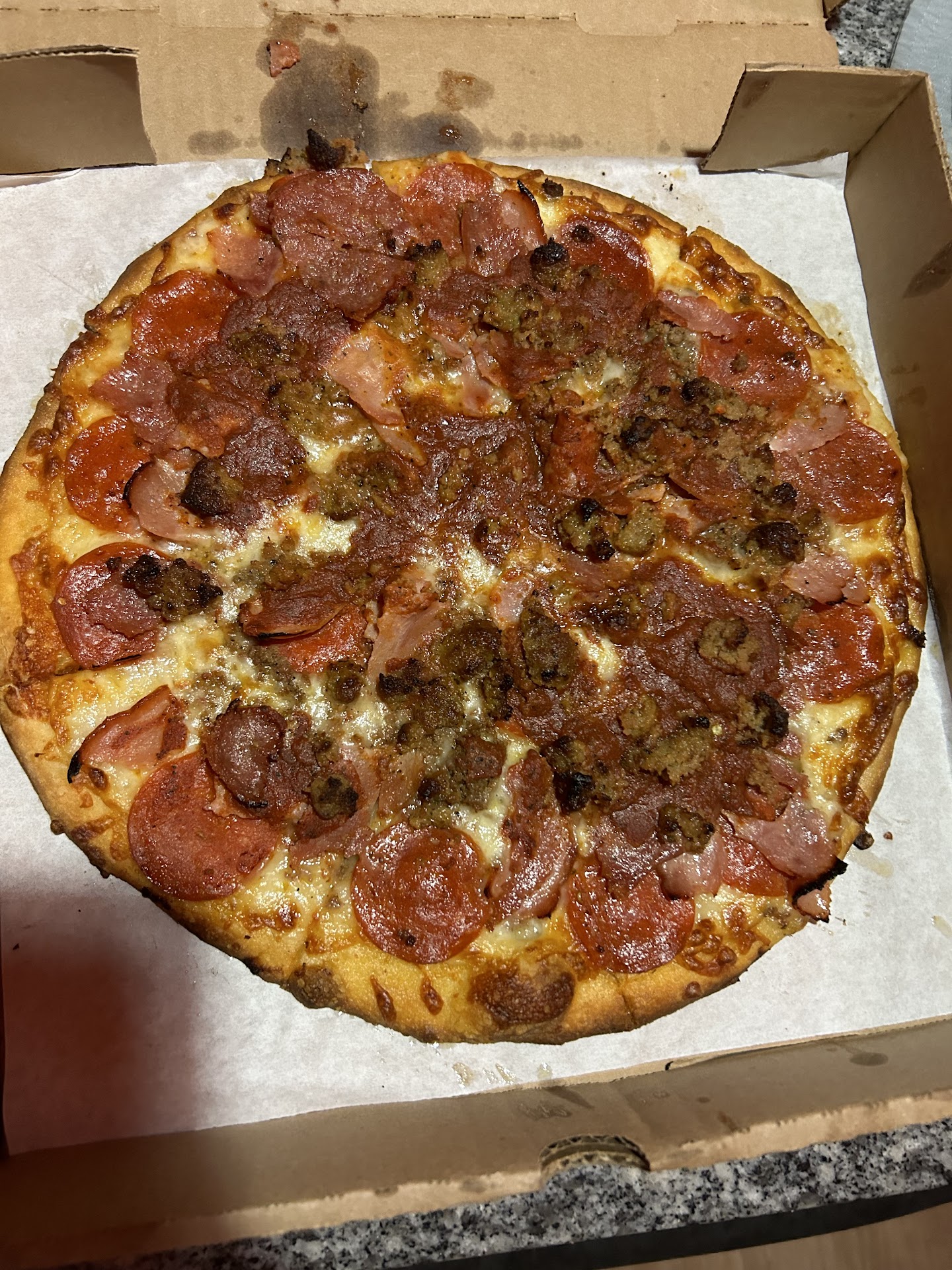 Ā Ā Ā Read moreJust placed an order on the app. We had all the toppings except pepperoni. We did the thing where we called. Didnāt have an attitude wasnāt even mad. Just wanted to have it corrected. Seemed simple, mistakes happen. The guy gets mad and has an attitude assuming we were going to call and give him a hard time when really I just wanted to ask for the red pepper flakes and ranch. Itās funny really because he starts yelling āI already told you I was making you another pizza!ā Iām shocked looking at my gf like what did I even say? And proceeded to ask why are you yelling sir? Iām being calm and patient. And proceeds to shout over me not even realizing that I wasnāt even mad and proceeds screaming like a mad man about how heās by himself and that the driver has to come back to deliver the fixed pizza as if it was my fault. YOURE THE ONE THAT MESSED THE PIZZA UP THAT I PAID FOR. SO ITS YOUR FAULT THE DRIVER WOULD COME BACK. Whoever this man is, donāt leave him by himself again because heās going to take out his anger on your paying customers.