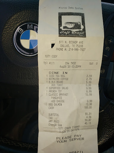 I heard many people say that it was the worst Cafe Brazil out of all of the DFW Cafes and I thought that was an exaggeration. But after reading the reviews of cockroaches in water and burnt food and then experiencing this for myself, I can honestly say this is definitely the worst branch in the DFW metroplex. The amount of alcohol I would need to even consider drunk eating at this place would literally...