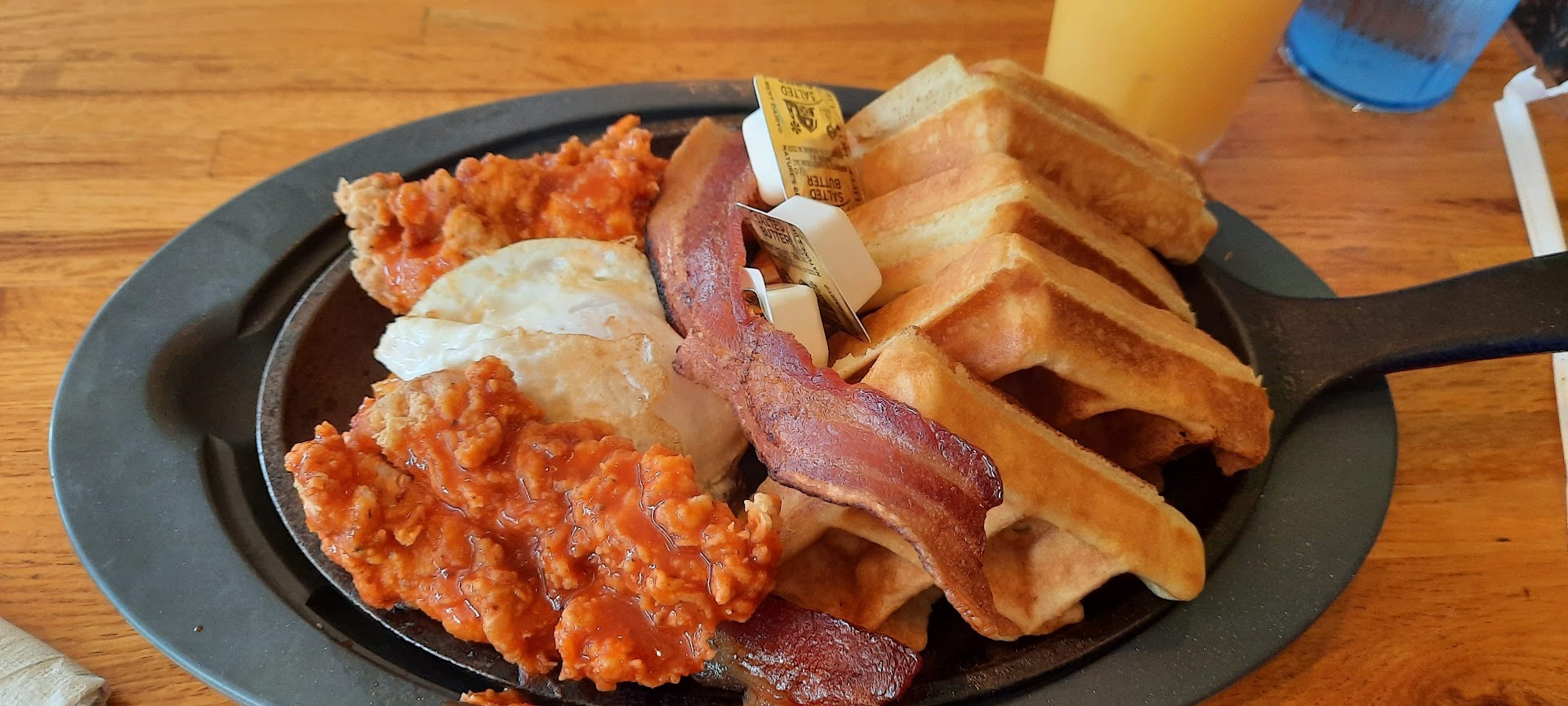 Alright. Still giving it a go. Waitress comes back with the food and drops the entire order, less one plate all over. She tried to bring all the food out at once with a little help from another person. It was very hot and with no tray. The only plate we asked for eggs with no cheese, welp it had cheese. We asked for the entire order to be remade. The other person helping her helped clean up while she collected herself. It’s an honest mistake.