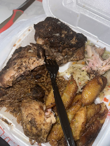 Ā Ā Ā Read moreOkay so not going to lie, place looks pretty run down. Bathrooms not working and since the sign that tells you that is bolted to the wall I imagine it has been broken for a while. I'm not going to completely judge a place by its cover since I'm here for food, but if you have been upper class this is not your kind of joint. Along with the bathrooms too many other things "out of order". No goat when I tried to order it, no Jamaican patties when I tried to order, broken soda fountain. That's why I took off for service because the worker was fine. The food was delivered fast and there was a small spot with red blood in the chicken, which often indicates chicken isn't completely cooked as it should turn clear. The sign says meat contains bones but it is as though they took a whole chicken and used a hammer to separate it because everything is broken and there are shards in the meal. Onto the food, the portions are huge for the price. We both got a big tray of food for only $11 in the current economy. The rice/beans side was good, the cabbage side was very good. I got the curry chicken which was good enough for me to order again but the jerk chicken was really good. Nice charred taste with a good balance of spice. In the end I would order again for the jerk chicken alone but the place is really falling apart and because of that I cannot say this place is...