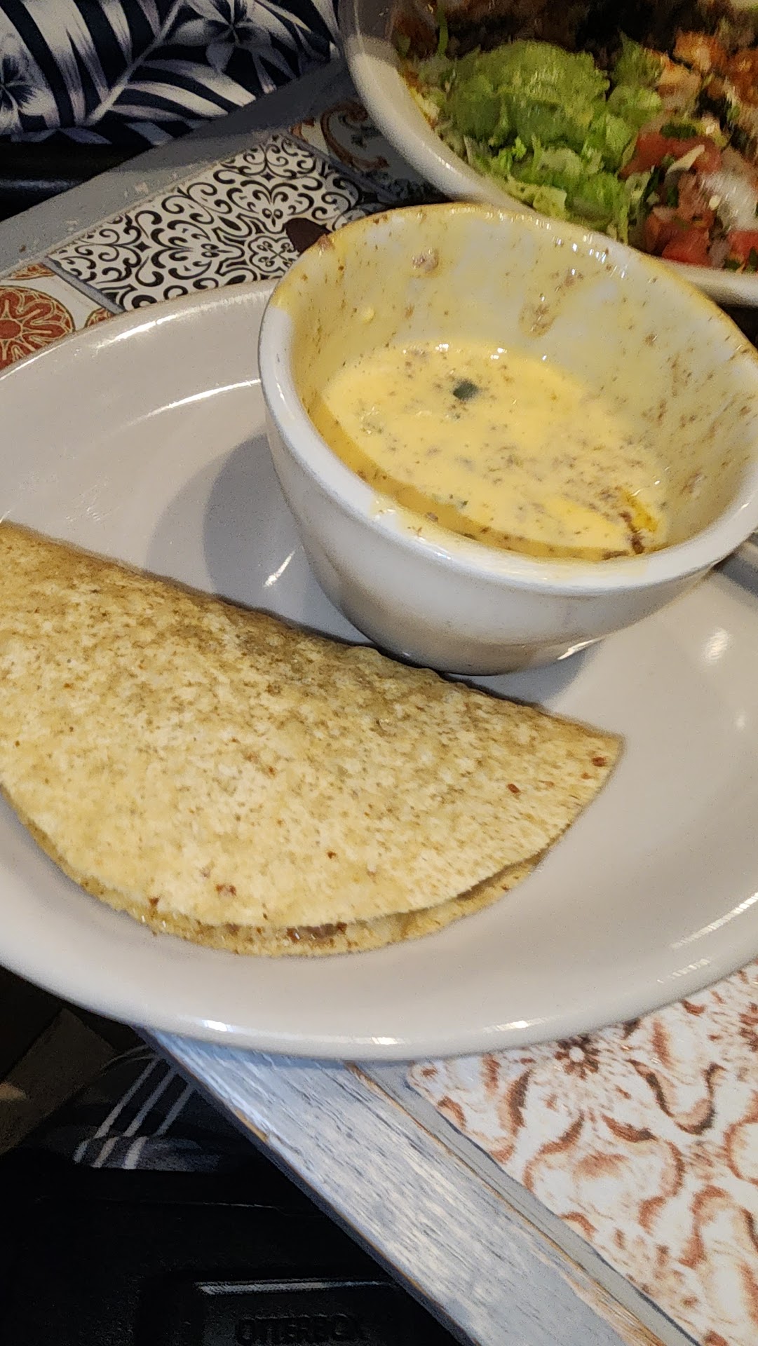 A few minutes later our appetizer arrives, but he still doesn’t let us place our order. He just asked if we wanted flour or corn tortillas for the queso flameado which is 10/10.