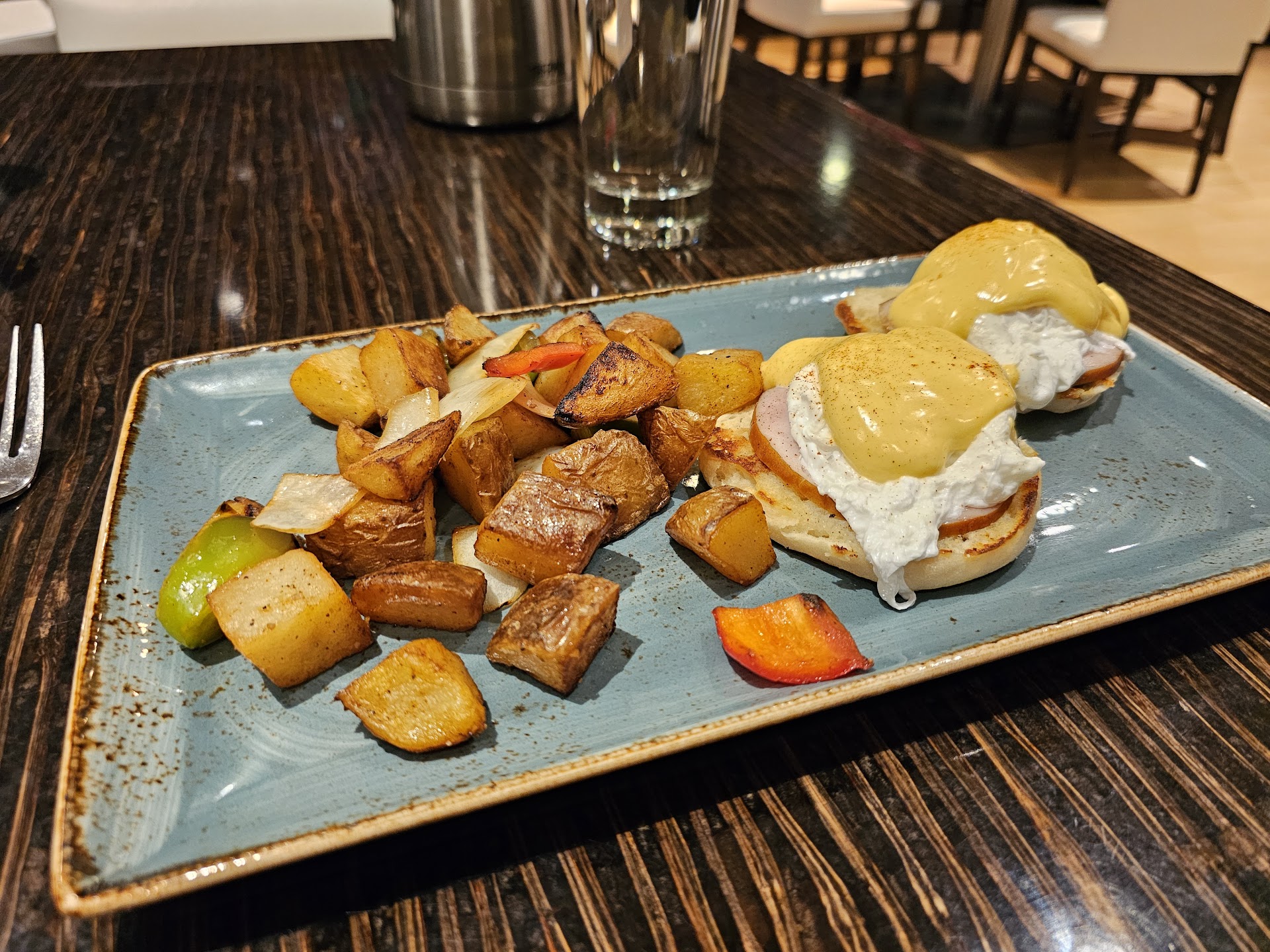 ✔️ Ambiance and service is good. ✔️ Portions are large. ✔️ Convenient place to eat if you are on business. ❌ Food is tasteless and greasy. ❌ Expensive.