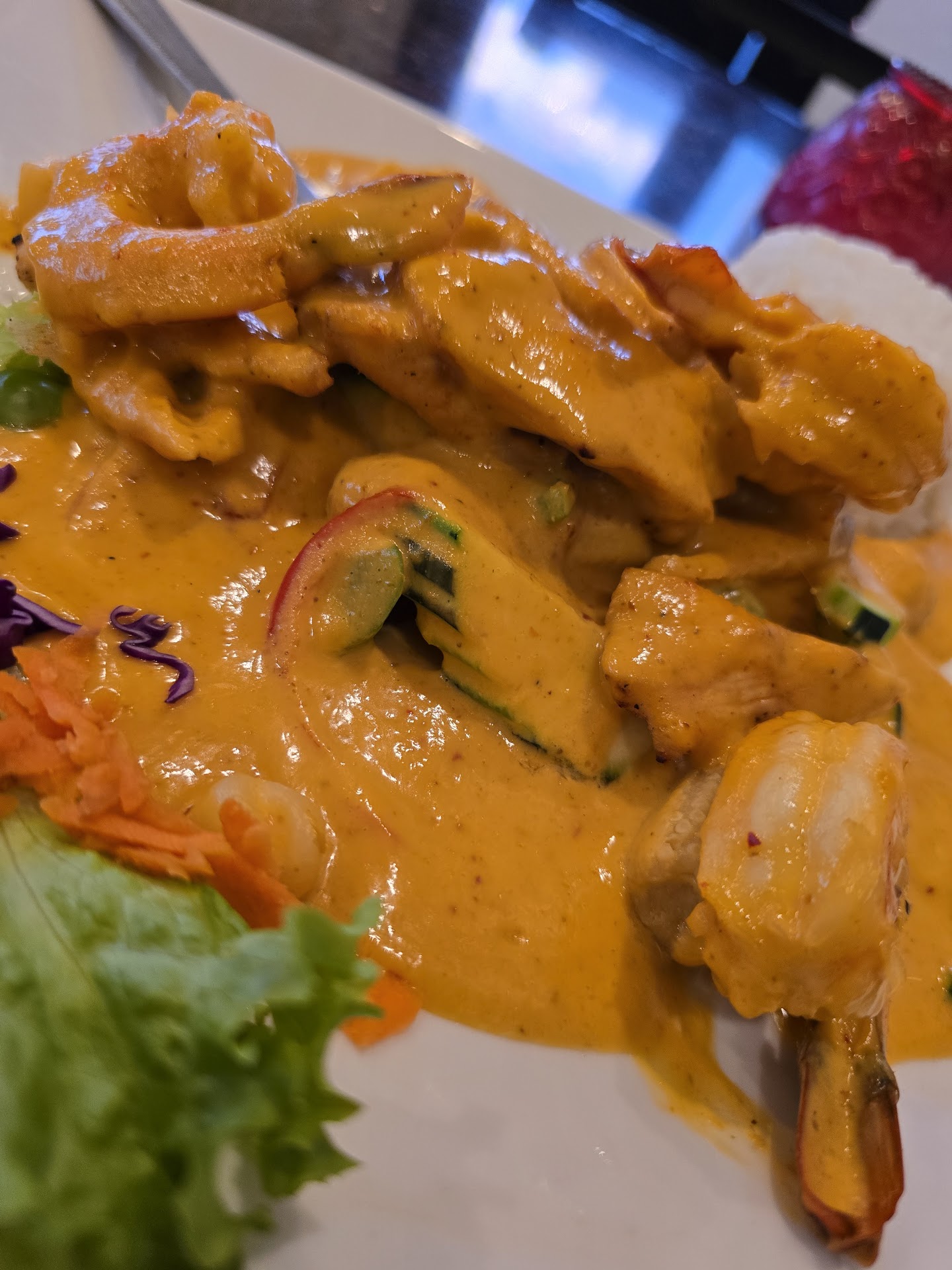Tom Kha- not even hot, shrimp overcooked, but decent flavor, not even spicy even though it says it is.