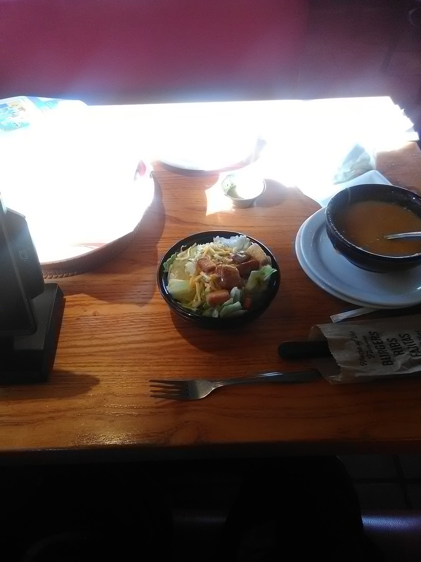 Read moreI came here yesterday evening and what an awful experience, I came with my son and we came to get him a dinner I just got salsa and chips and a soup and salad. It took an hour for this, in the beginning I ordered and they brought out my salsa and chips right away and my soup, which was odd because that typically comes with the meal, anyways the waitress then says someone else will be helping us, we wait, and wait, and wait, 20 minutes later the waiter says your salads about to come out in just two minutes, and we wait again, 10 minutes later he brings me a salad that was only lettuce and cheese in a soup bowl, meanwhile my sons meal wasn't there, it was comical, it looked like something someone threw together cause they didn't know what to do, lol I took a picture of it I will post, then we wait and wait, 15 minutes later my sons 3 chicken tenders come out, the waiter says the manager is going to talk to us, I assume to apologize, but of course he never comes over, I then get the check and it is double what we ordered, it took the waiter another 10 minutes to correct it, and then the manager comes over and says sorry about the check, not all that had happened but the check, very disengaged staff and management, every other Chili's I go to is fine and why, why does this sort of thing only happen here, BRINKER fix it, they know there is a problem, it baffles me they let this go on. Not to mention, the reason we go here is so my son can have the Lava Cake, which we couldn't get because there is no telling how long that would've taken and it had been an hour, BRINKER YOU KNOW THIS IS GOING ON THERE FIX IT, me and my son love Chili's and this is such a disappointment. I wish Wyman Roberts would go on undercover boss...