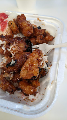 Ordered a double entrée with orange chicken and steamed rice. The steamed rice was super dry to the point where they didn't even stick together, its impossible to eat it with a fork, since they do not offer spoons.
