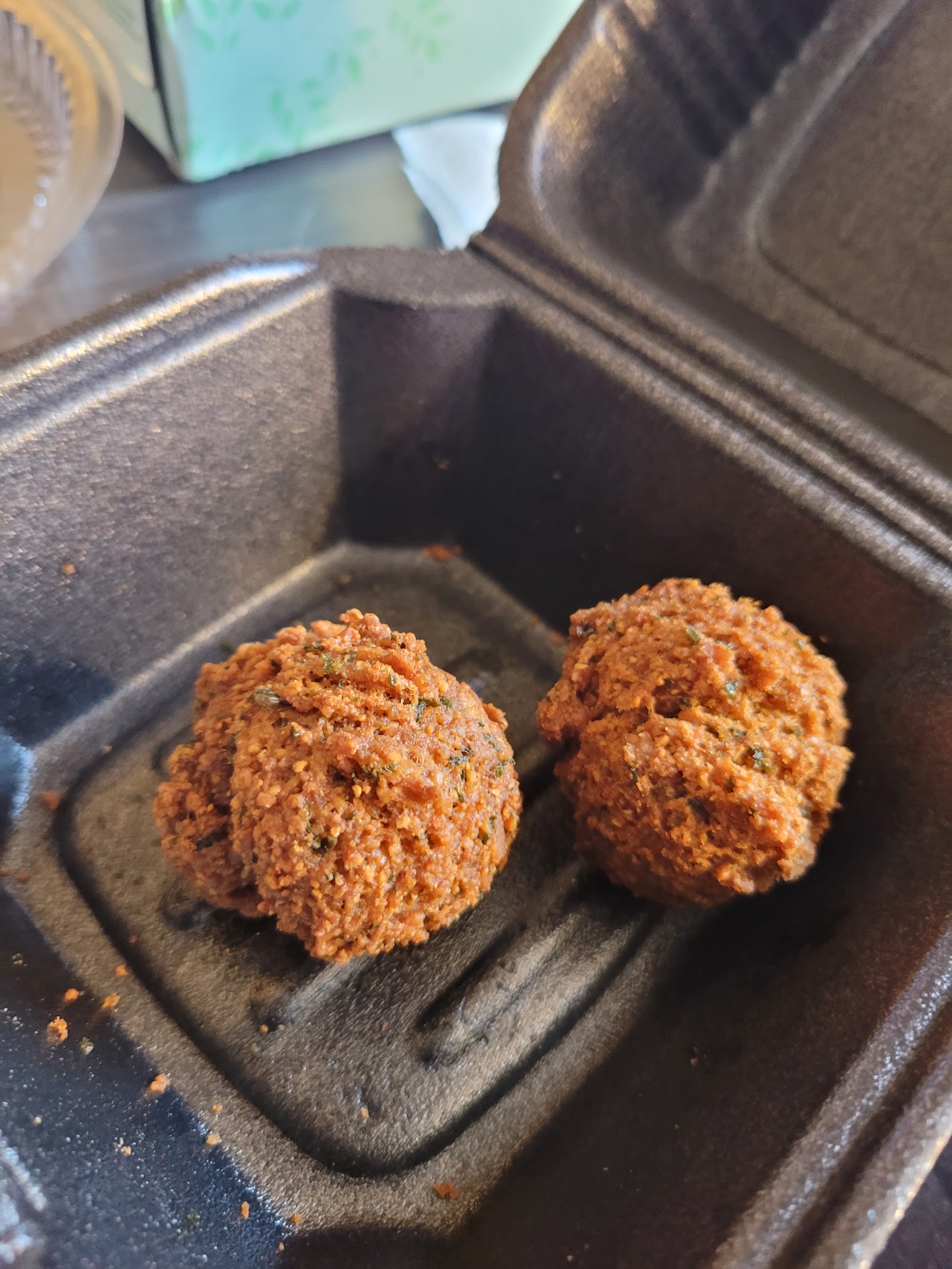 Working late and I was happy to discover a new falafel joint practically around the corner from my offce that looked identical to another restaurant that I love and frequent (“Chopped Halal Grill” in Richardson, TX). I was excited and prepared to order my usual chicken and rice bowl, but after seeing a pretty noticeable, dried film of dirt and dust running all along the salad service area as well as the entire front counter looking rather messy (crumbs, etc), I was very discouraged to order anything from that area. Still, I was very hungry, so I tried their falafel and onion rings instead, which I hoped would be safer. Their falafel was “ok” at best; it was a bit dry and I didn’t like that they really overindulged their falafel with cumin spice which made it taste very “fishy”. Upon closer inspection, I realized this isn’t Chopped Halal Grill at all. Wow, I never ate at a restaurant that so blatantly plagiarized another restaurant’s logo, menu, etc. There’s best practices in every industry that players in that industry should try to replicate and implement, and then there’s creative materials that belong solely to the owner (e.g. copyright materials) and would be immoral to reuse at will. It was really disheartening to find a seemingly gross theft of creative materials by this establishment and that I fell for it. However, they are NOTHING of the quality, cleanliness, or taste of Chopped Halal Grill. My sadness was compounded by the fact this restaurant supposedly serves Halal food (food that complies with Islamic rulings), but the religious spirit, in my opinion, is grossly diminished by their theft of creative materials from Chopped Halal Grill. Never again for a...