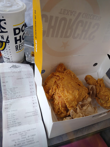 Read moreDO NOT USE DOOR DASH FOR THIS LOCATION! I used to love churchs when I lived in south texas before we moved. I didnt have one near me in denton so we always used popeyes. No problem. Well my daughter is in NICU and I really wanted to eat some good fried chicken and I needed it delivered so I looked up on door dash places for chicken. Churchs came up. Cool. Ordered a 6 piece all white meat, with two sides, biscuits and 1/2 gallon sweet tea. When the dasher picks it up they say that they dont have the tea and we weren't charged(looked on the receipt and it's still the same price as before). When they get to childrens, we go downstairs and go pick it up from them and go upstairs to eat. I'm starvin( currently pumping for my daughter who's 7 weeks and has to eat from a tube which makes me reallllly hungry) and open the bag to find theres no biscuits, the sides have barely a handful in each bag(fries and oakra) and was burnt, and the chicken, which was supposed to be spicy, was old and dry. Im very disappointed in the dashes inability to check the bag and the store not giving me fresh food. I had to find other food which means spend more money and not get a good choice since the kitchen is closed. I really just wanted good food. I'll stick with popeyes...