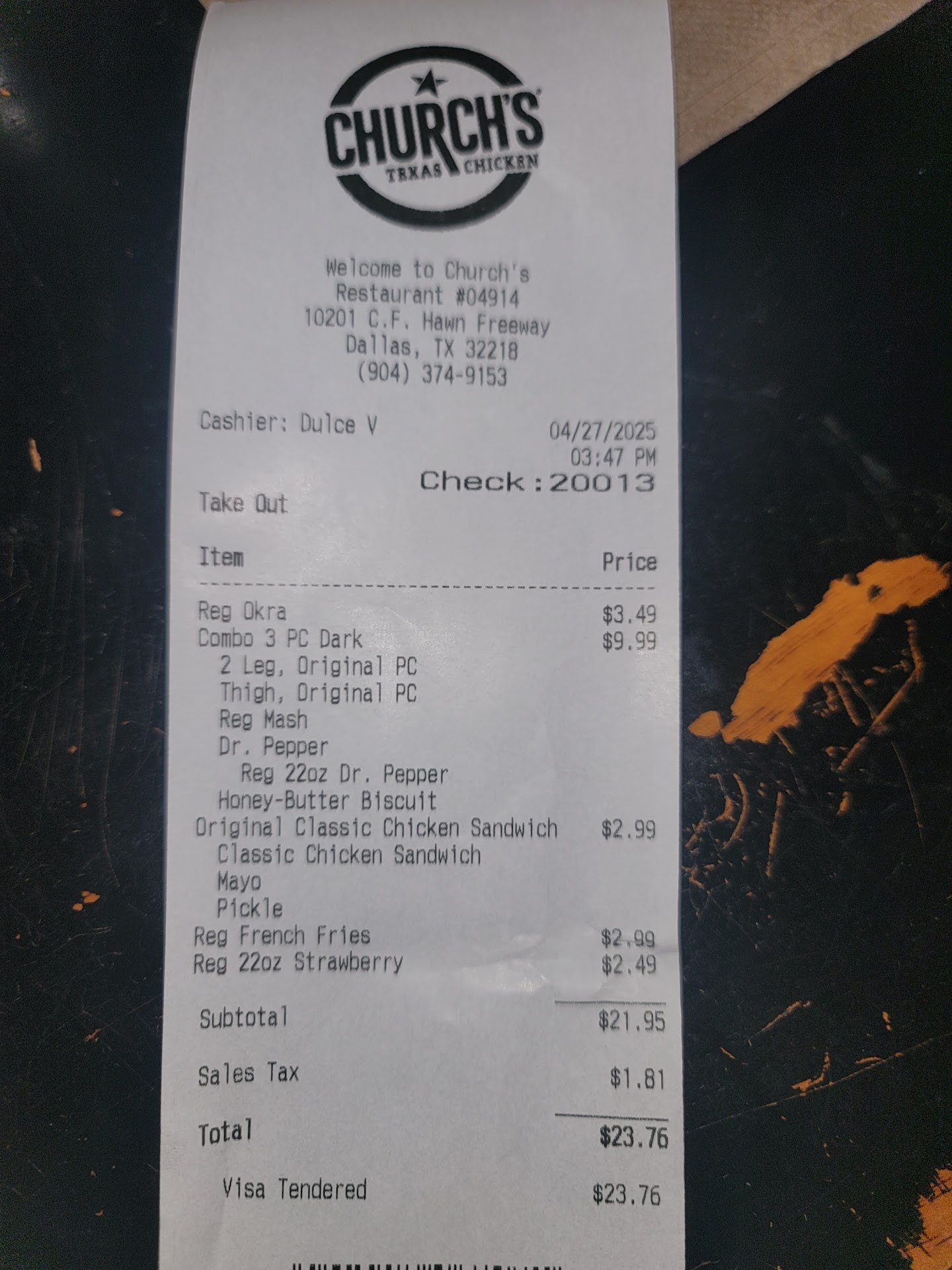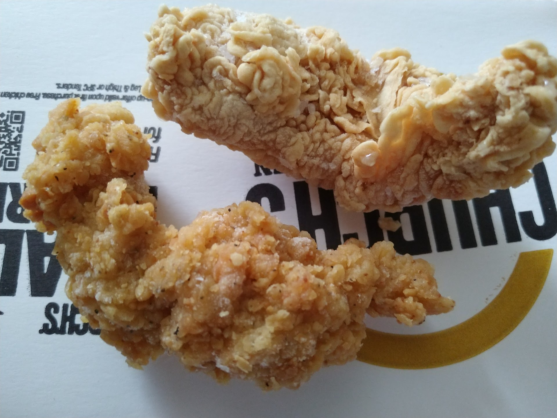 Read moreMy family loves their tenders. Yet, there is no consistency in the tenders. One day you may get good and flavored tenders with a nice crust, perhaps with panko crumbs. The next day you will get regular battered tenders with zero flavor. Take a look at the picture. The darker colored one is from two days ago. Just this past Thursday, I got the really flavored and a nice crust. Today, just two days later, I received regular battered unseasoned tenders, a mere two days later. I'm done...