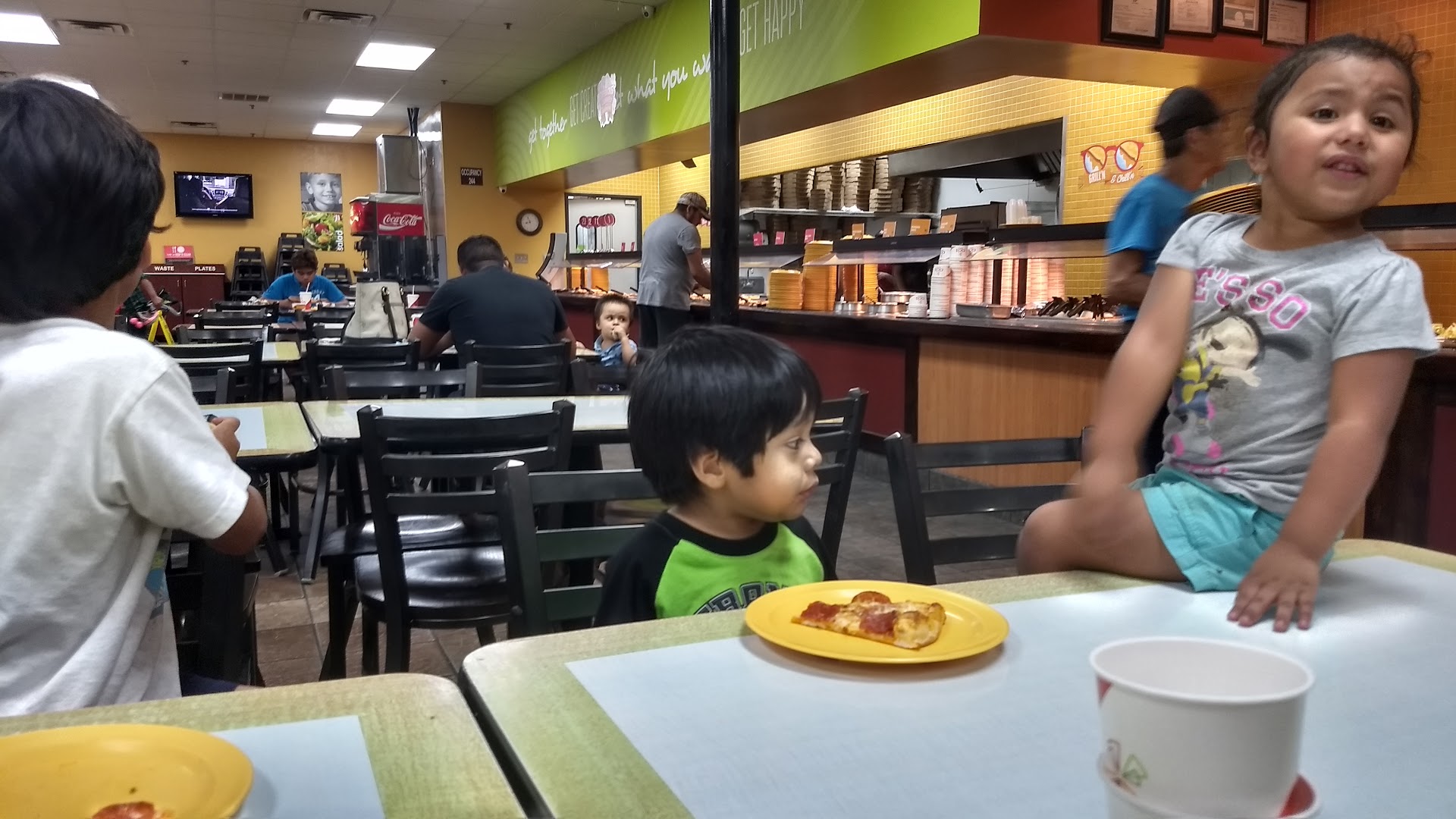 Read moreThey don't accept cooperate coupons and don't honor the 3.99 Monday through Wednesday buffet deals. Don't have a good variety of pizza on the line so most everyone was ordering personal pans. Salad bar was awful! The carrots were slimy the cucumbers we sliced so thin and horrible they were falling apart you couldn't even pick them up with the tongs and had more slime than the carrots. The chicken noodle soup is usually my go to if nothing else and I made 4 bowls and stirred the pot each time NO CHICKEN! Bathrooms were dirty. Expected with everything else going wrong. Want to shout out to the nice Mexican lady cleaning the tables though she was amazing and cleaning up everything herself even empting trash while other employees stood around like they didn't know what to do. Manager acted like he cared but didn't do anything to make anything right. All for show. DONT GO TO THIS LOCATION THEY ARE USUALLY BUSY BECAUSE OF THE AREA BUT LET ME TELL YOU THE ONE IN COCKRELL HILL IS A MILLION...
